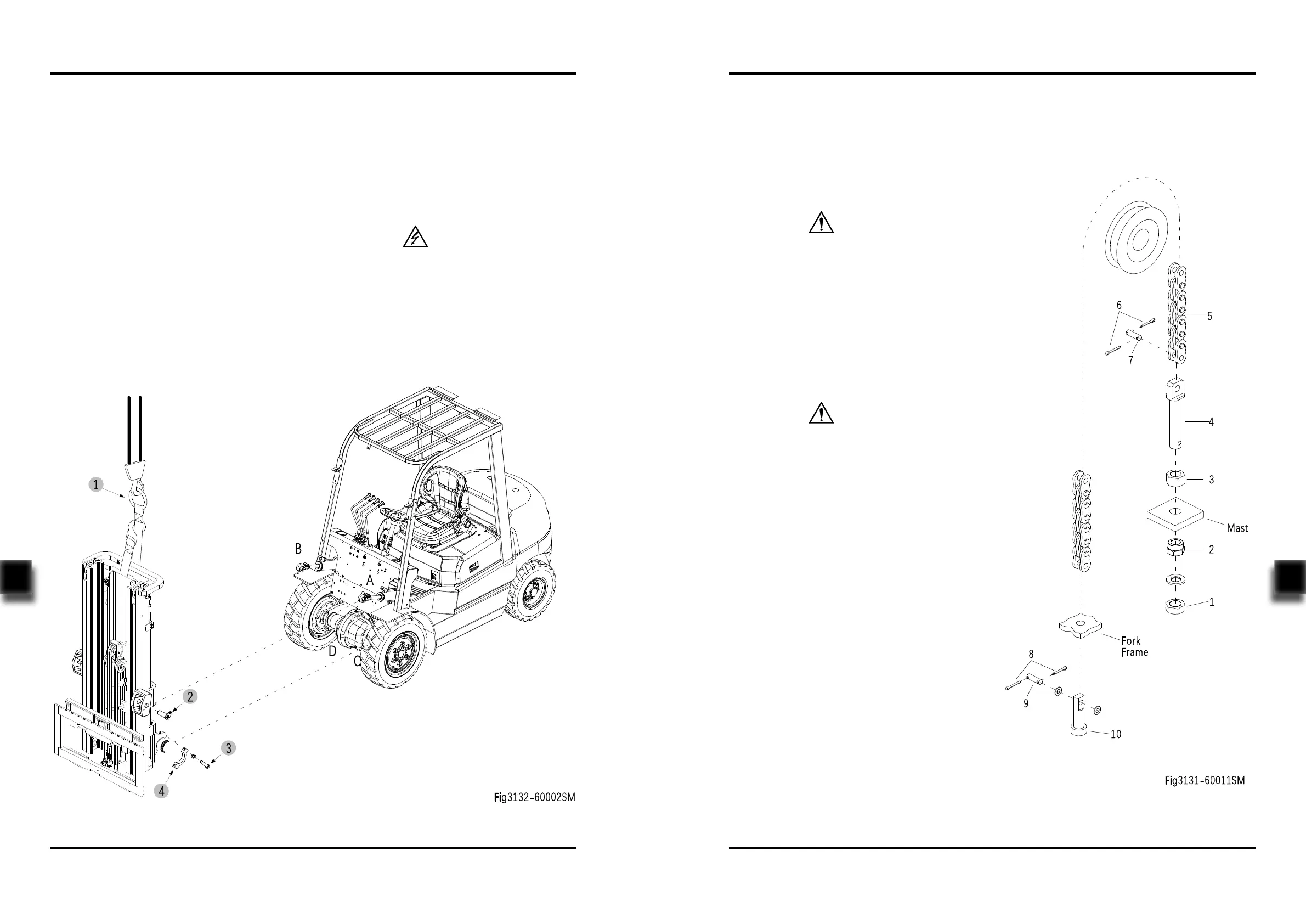 mast and tilt cylinders (A and B);