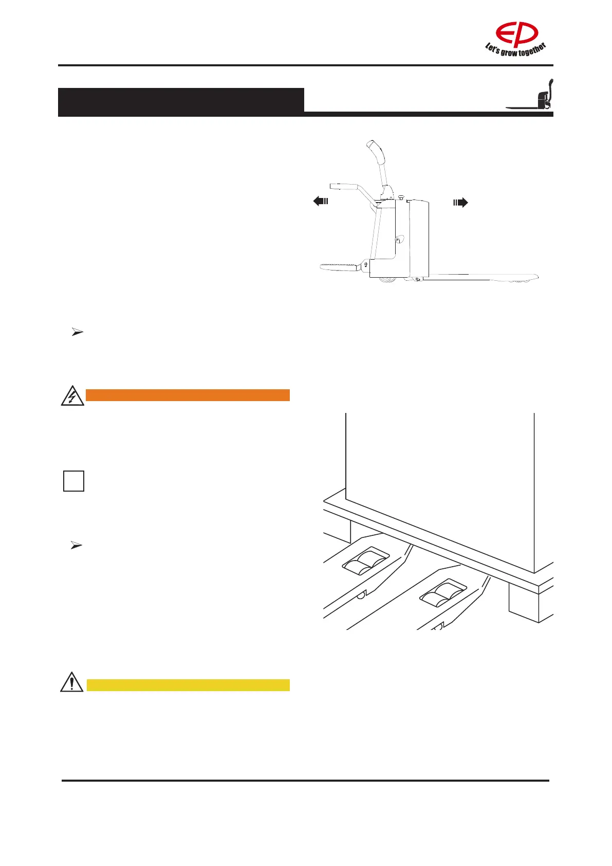 Lower the load until the fork arms are