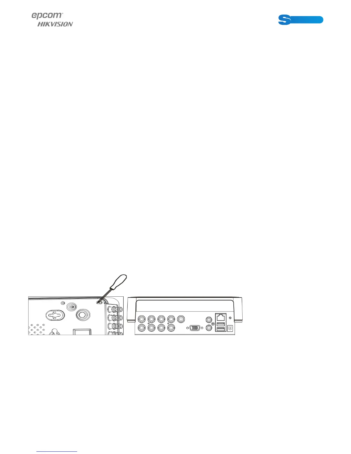 1. Remove the cover from theDVR by unfastening the screws on the back and