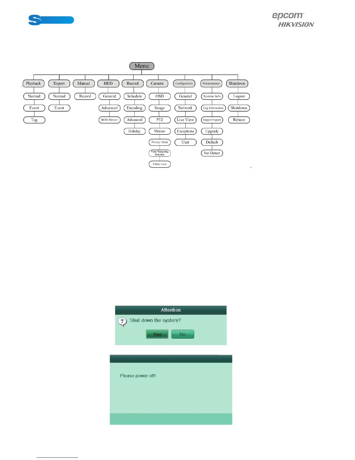 The menu structureof the S series DVR isshown as below: