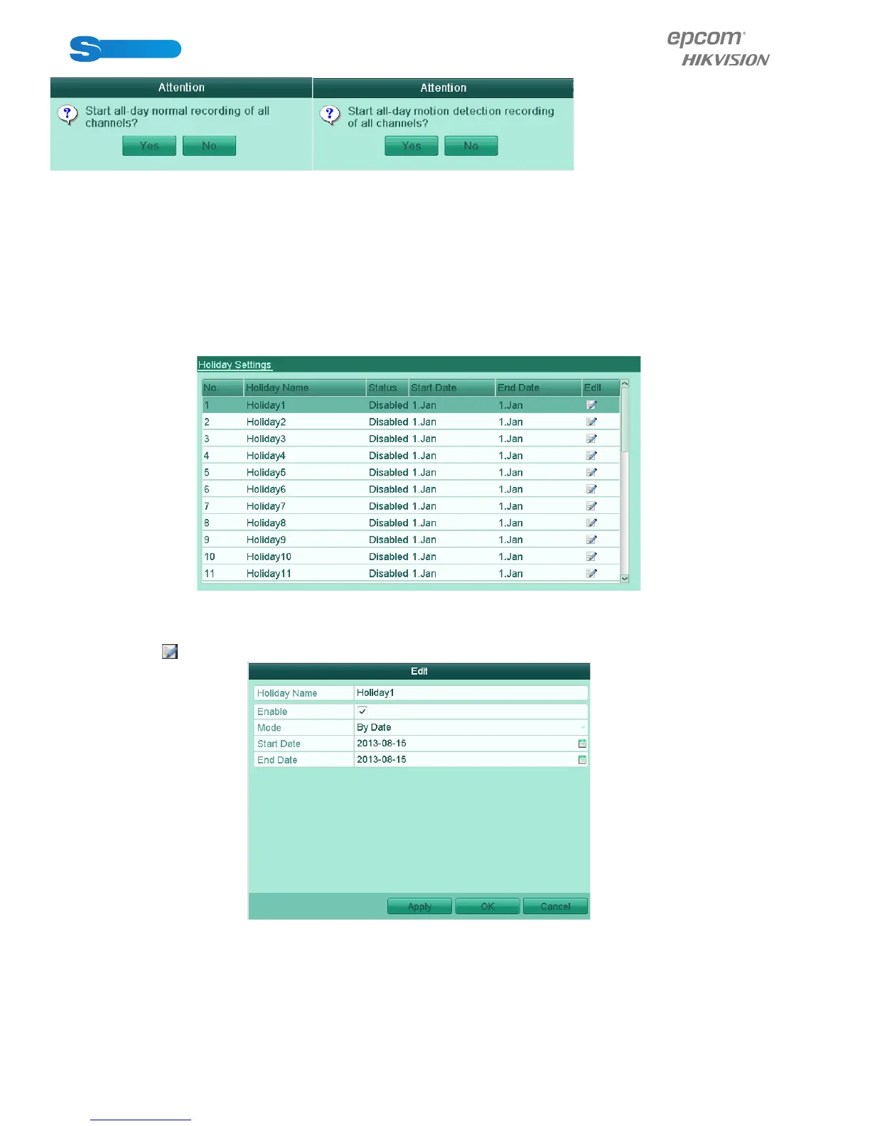 5.6 Configuring Holiday Record