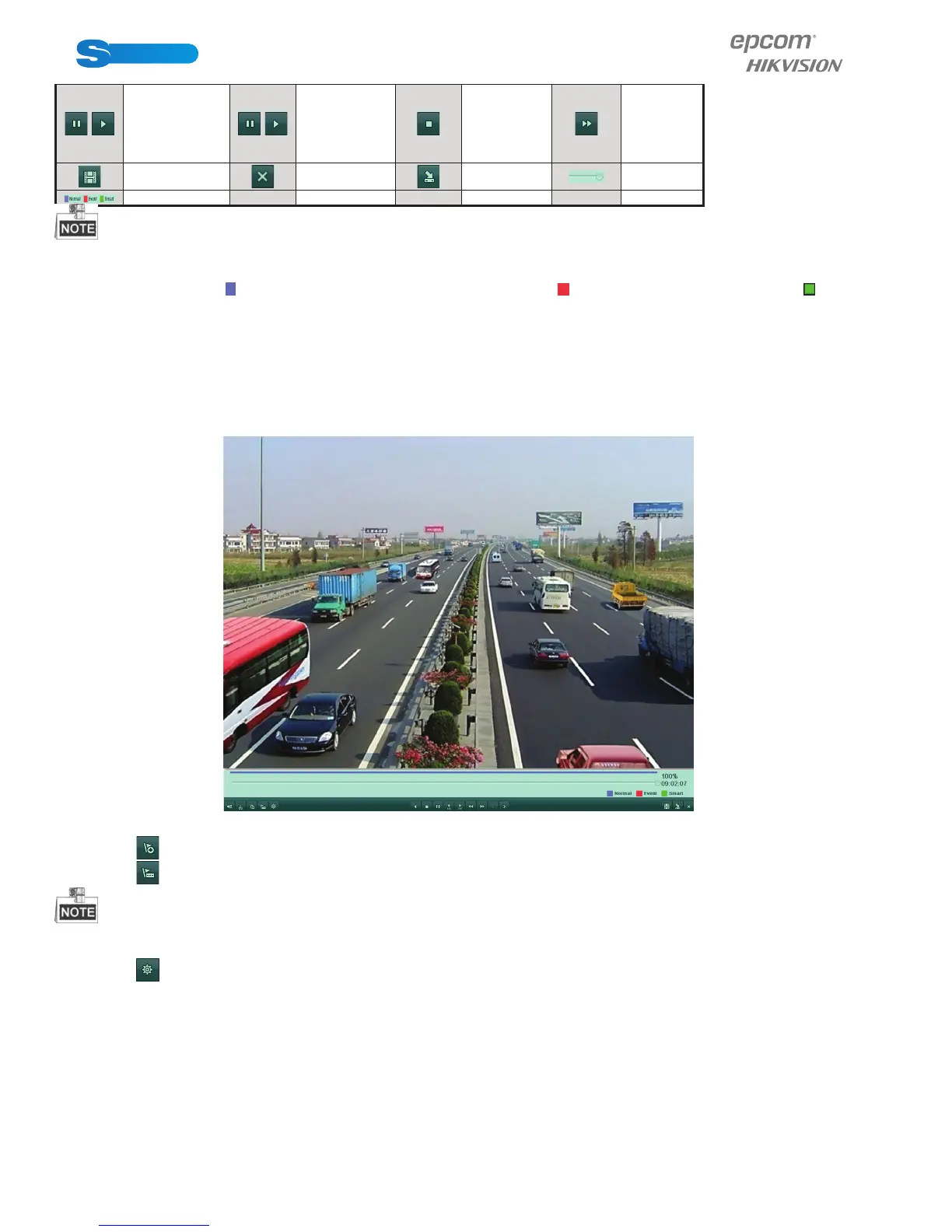 About video type bar: represents normal recording (manual or schedule); represents event recording (motion); repre-