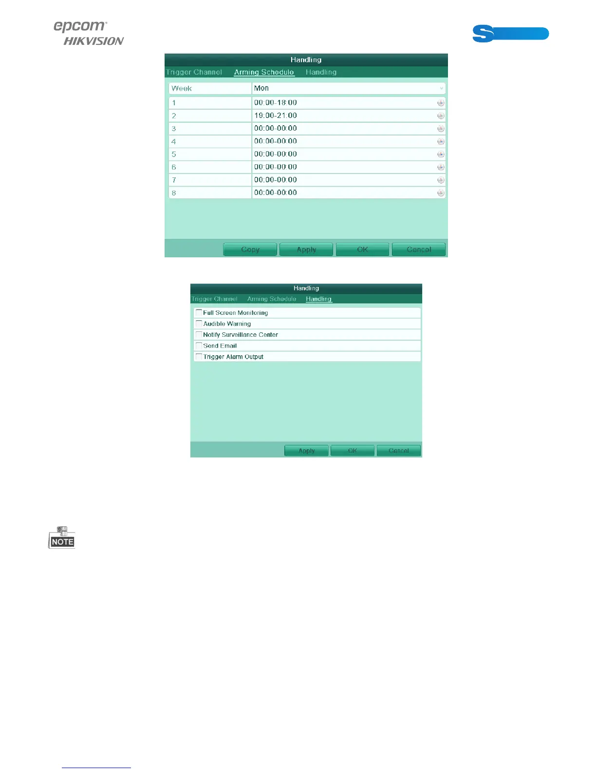5. Click Handling tab to set up alarm response actions of motion alarm (please refer to Chapter 8.5).