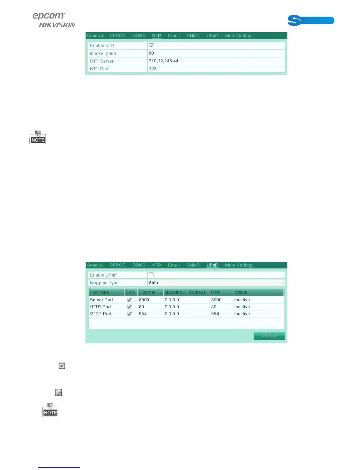 ter (IP Address: 210.72.145.44). If the device is setup in a more customized network, NTP software can be used to establish a NTP
