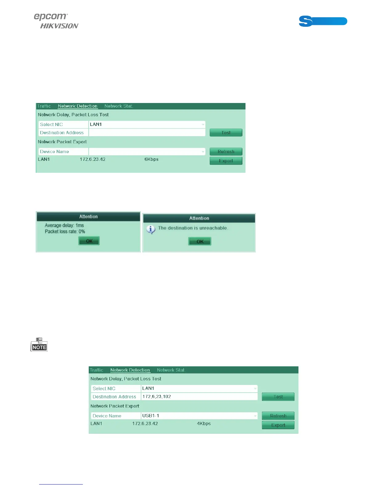 You can obtain network connecting status of device through the network detection function, including network delay, packet loss,