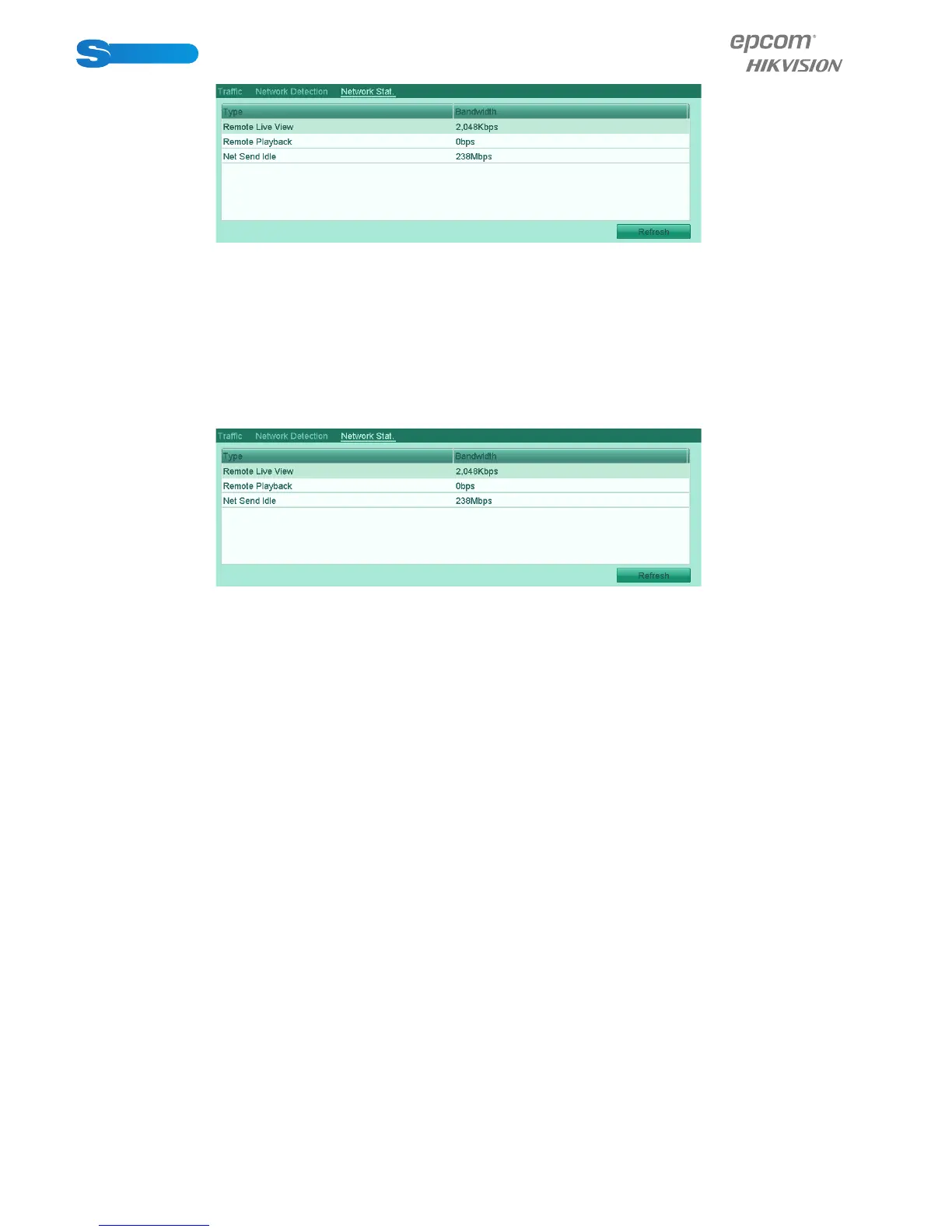 4. Click Refresh button to get the latest bandwidth statistics.