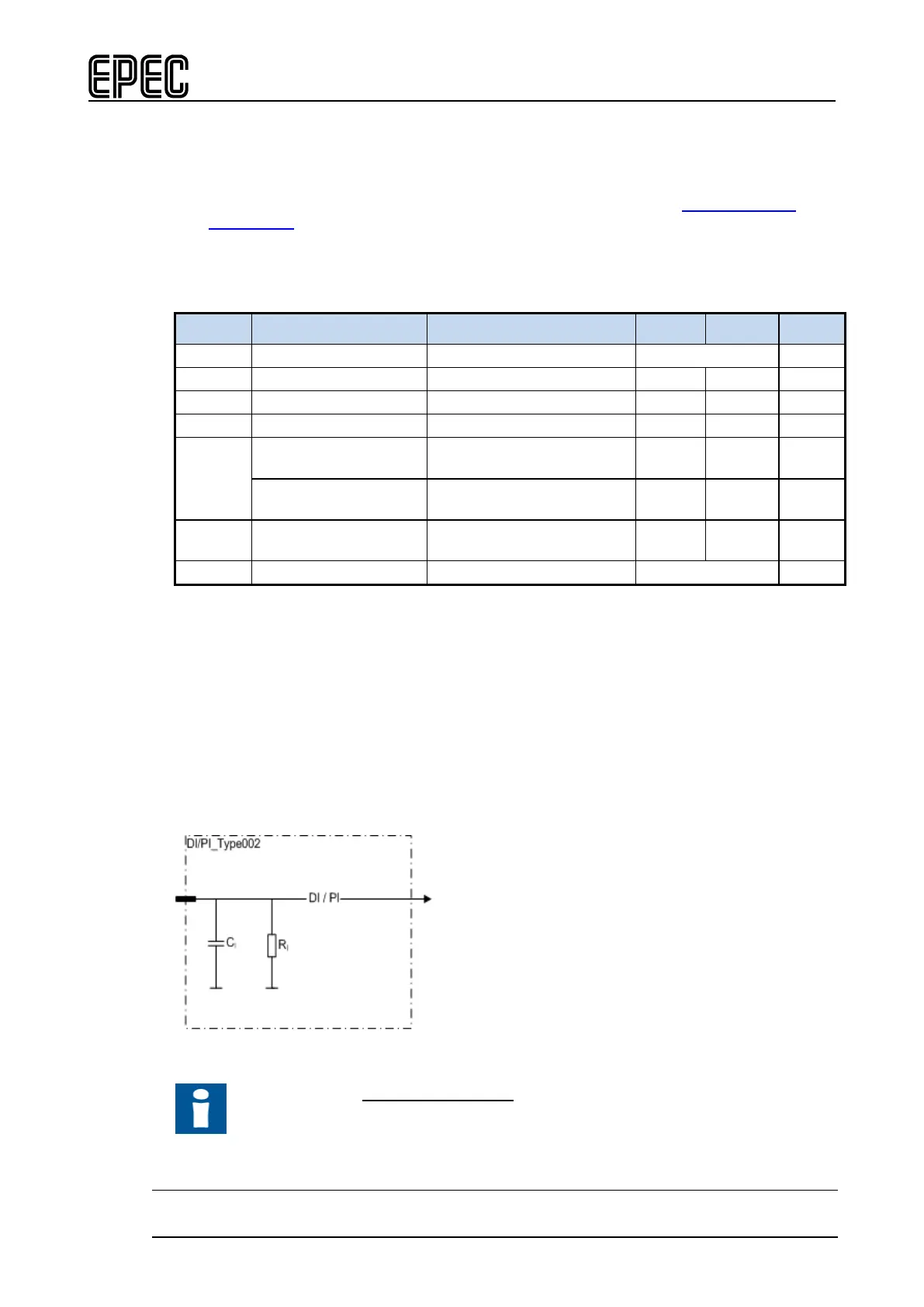 • This type of pin is a ground referenced input (DI) including a pulse counting (PI) feature.