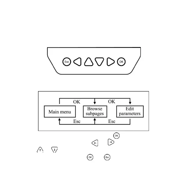 The buttons are respectively (from left to right) "ESC," "Left," "Up," "Down," "Right,"