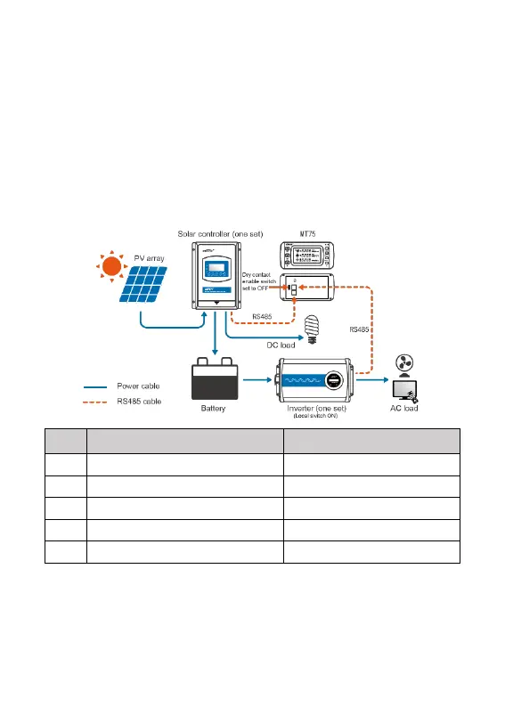 1. Connect the RS485 ports of MT75 to the controller and inverter.
