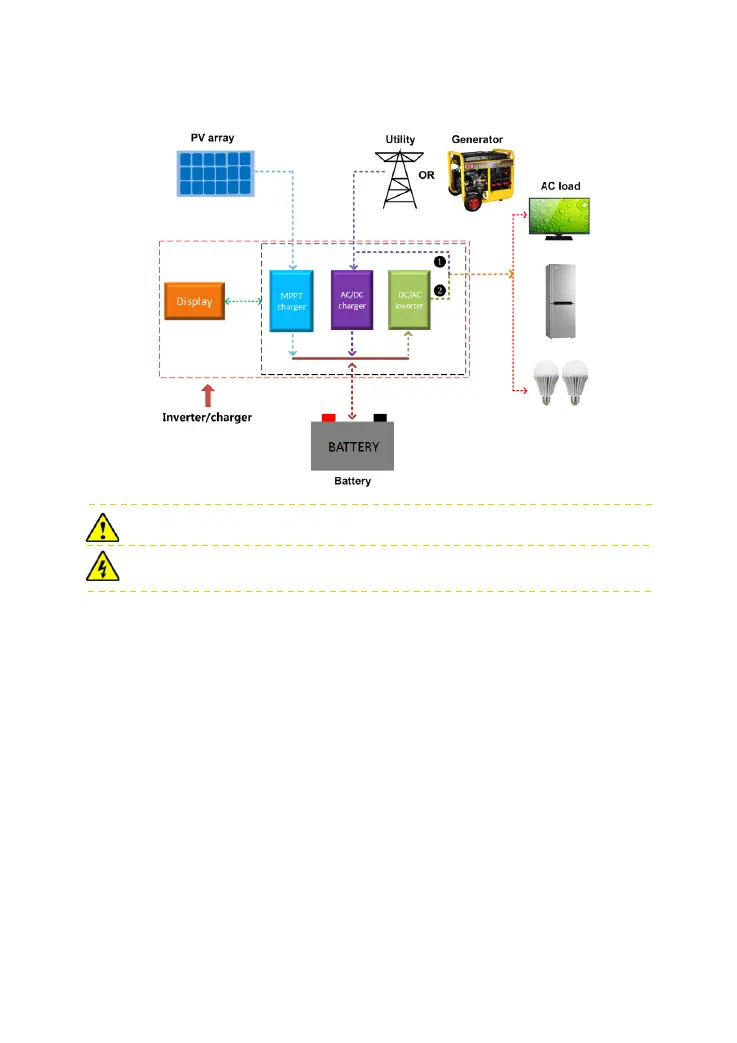 Confirm the AC load power compatible with the power of the inverter/charger. AC load
