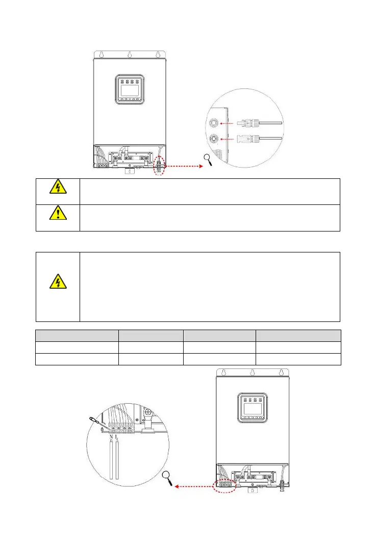 Risk of electric shock! When wiring the utility input, please disconnect the circuit