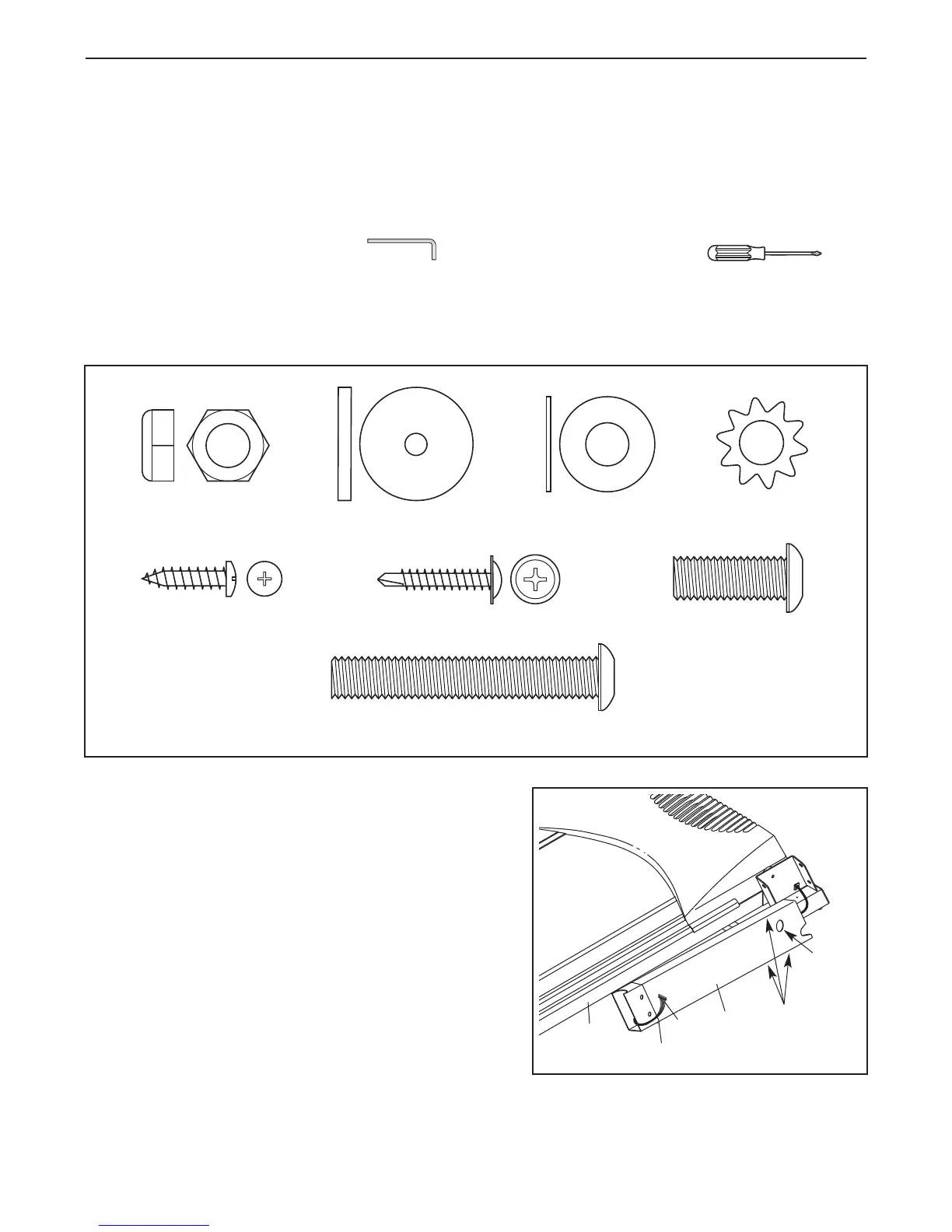 For help identifying assembly hardware, see the drawings below. Note: If a part is not found in the part bags,