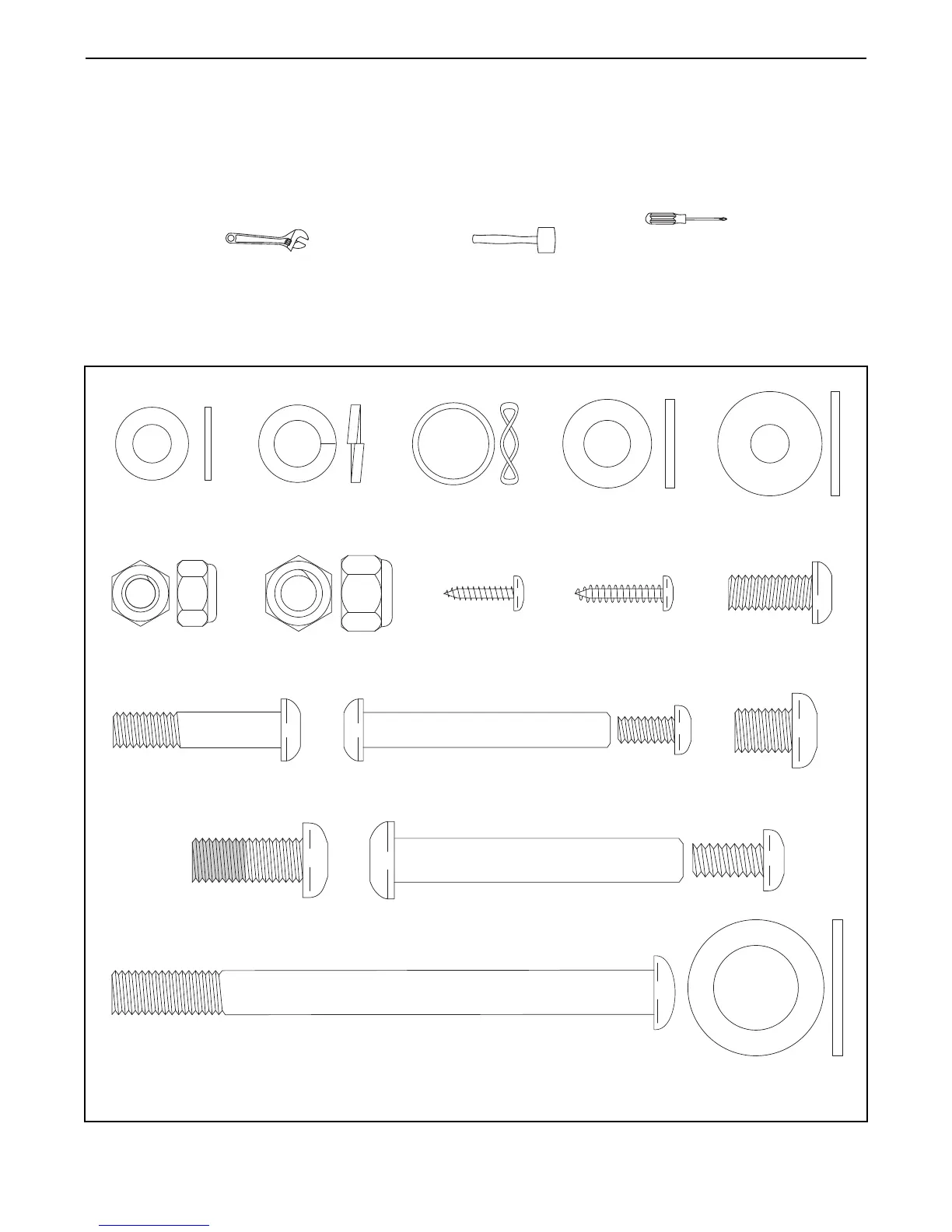 preassembled. If a part is not in the hardware kit, check to see if it has been preassembled.