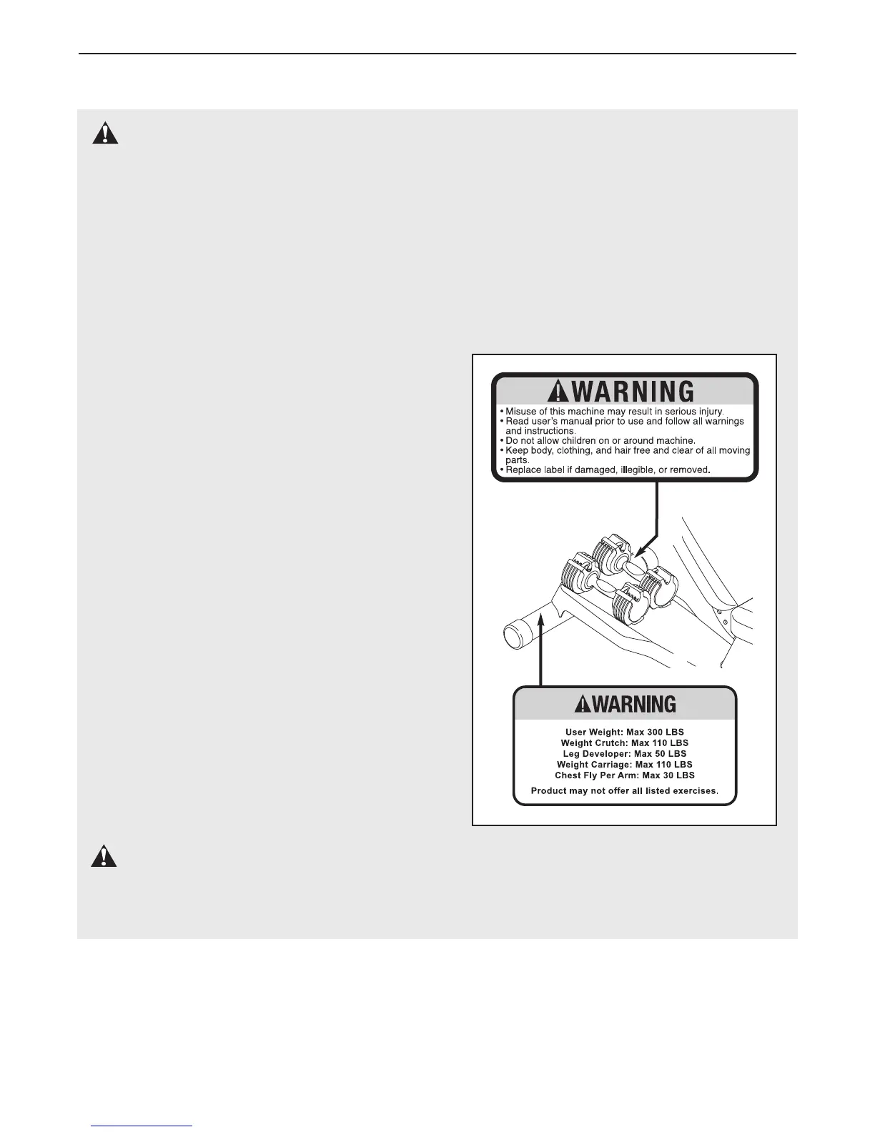 warnings on the dumbbell bench before