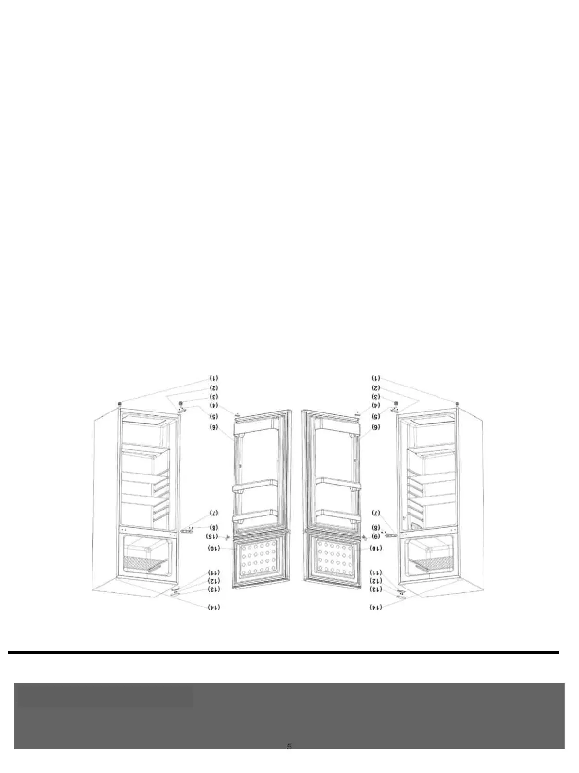 2) Pour accéder à l'ensemble de la charnière inférieure, vous pouvez incliner le réfrigérateur ou le placer sur son