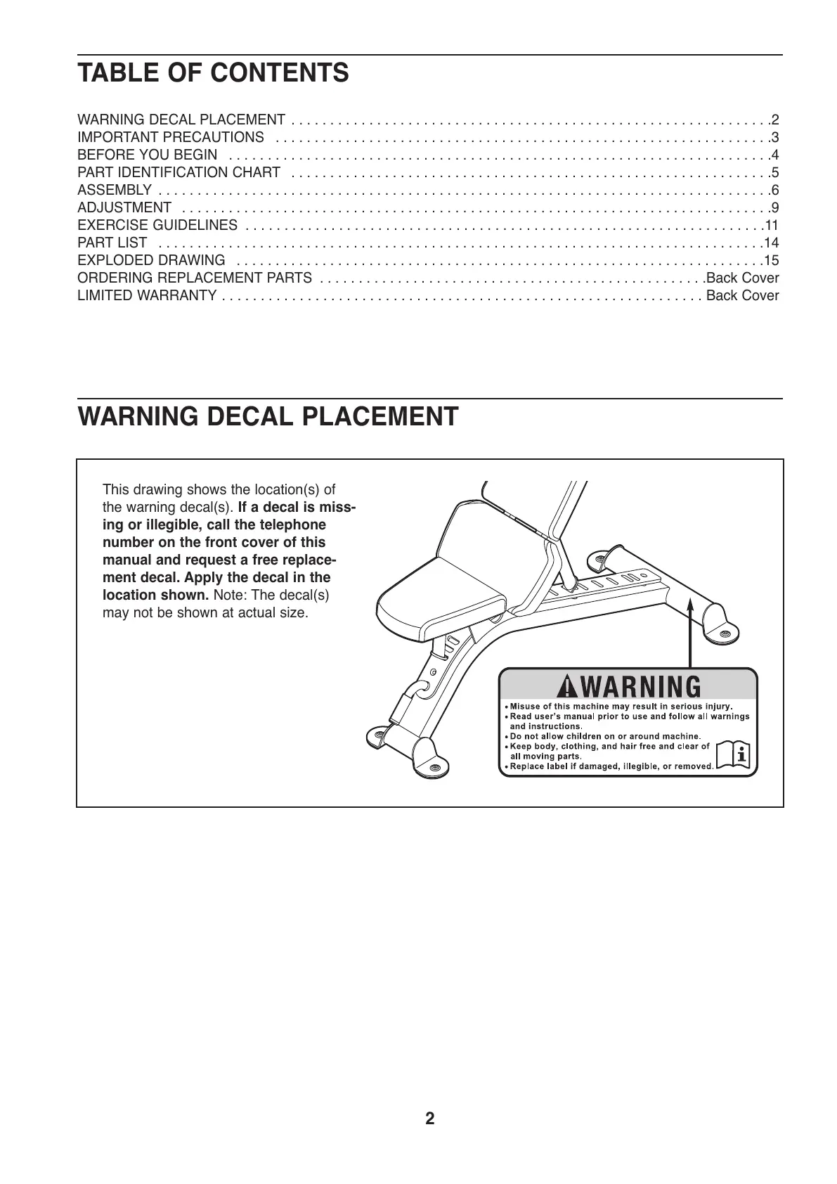 ARNING DECAL PLACEMENT . . . . . . . . . . . . . . . . . . . . . . . . . . . . . . . . . . . . . . . . . . . . . . . . . . . . . . . . . . . . . .2