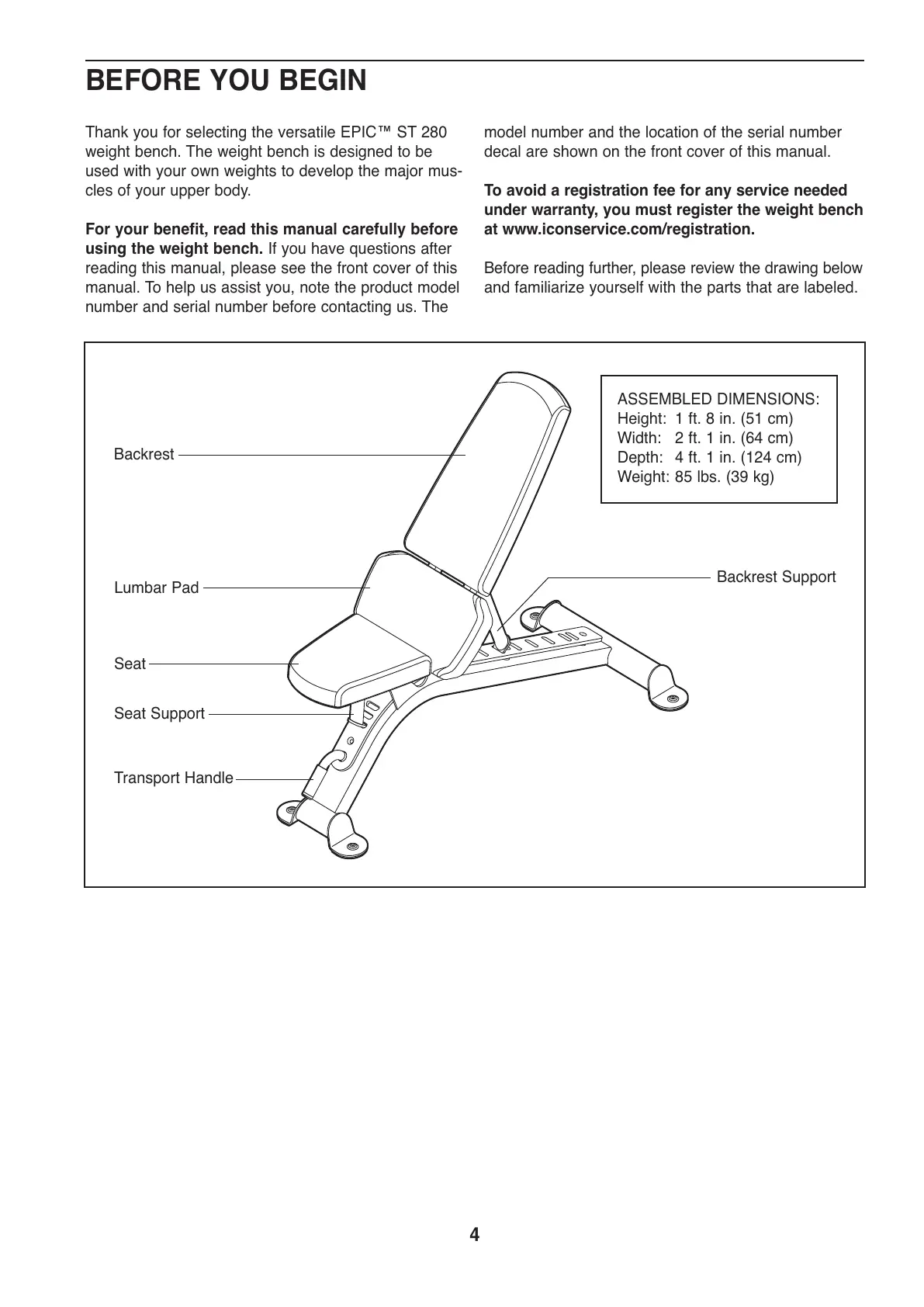 nder warranty, you must register the weight bench