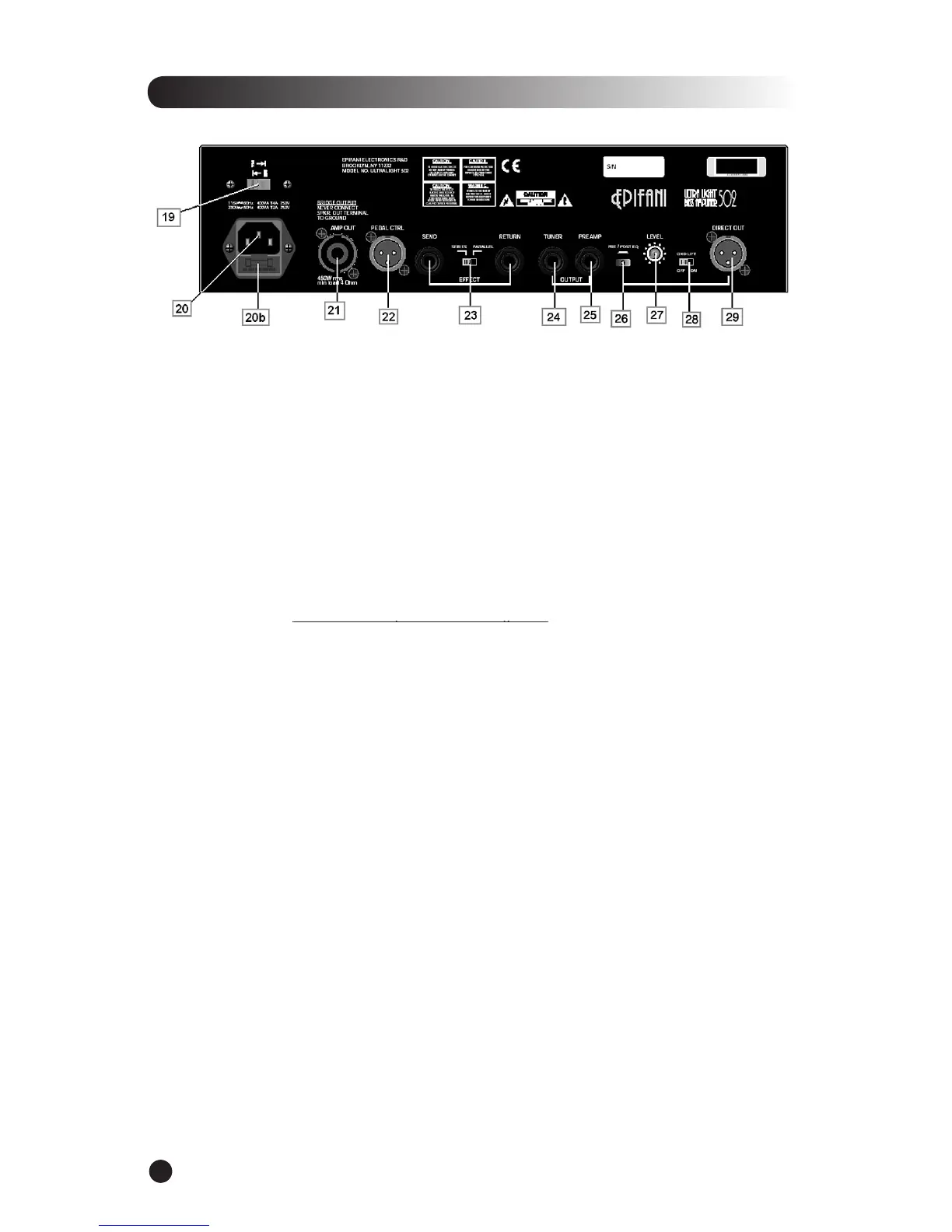 Effects Send/Return - Can also be run in series or parallel via the selector switch (23).