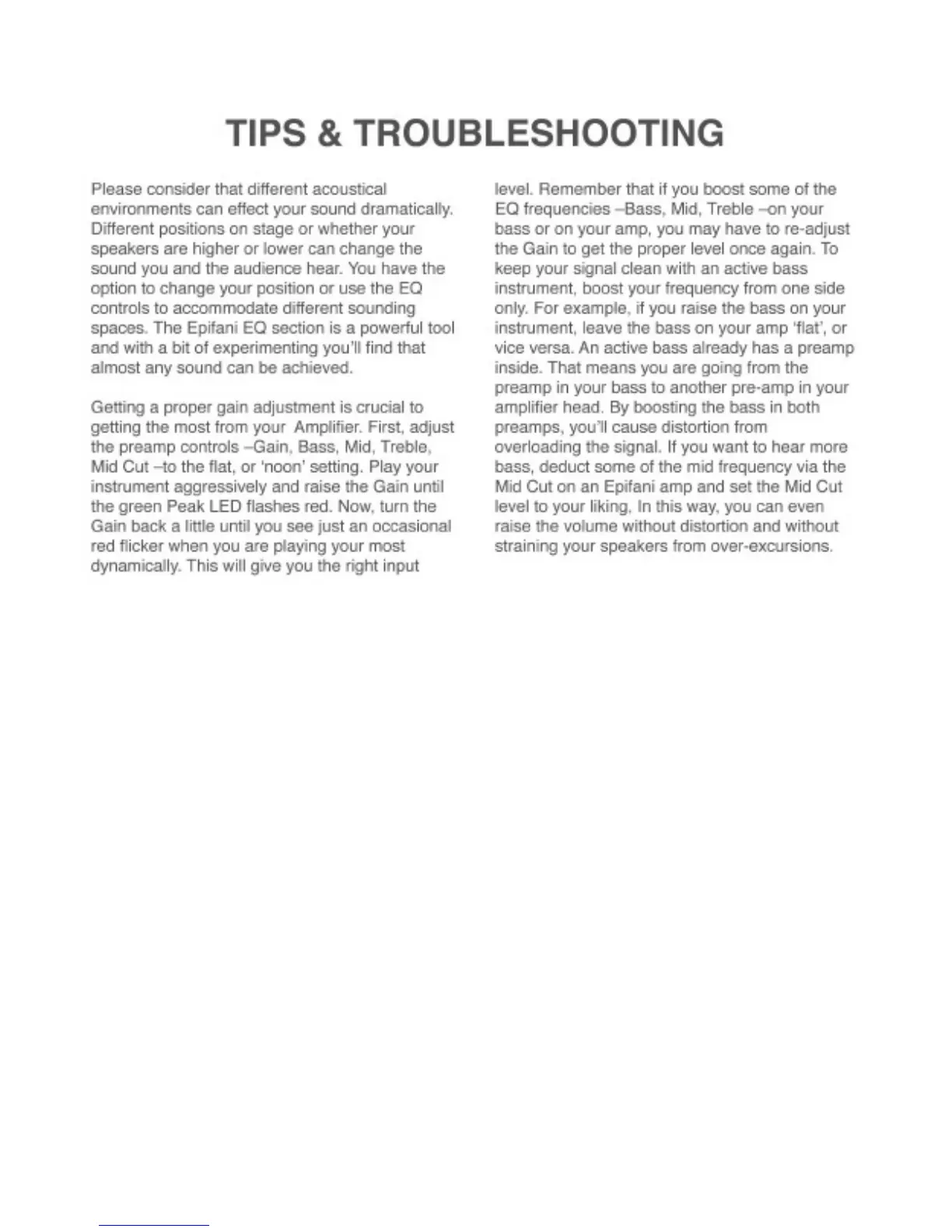 Epifani UL501 - Tips & Troubleshooting; Acoustical Environment and EQ; Gain Adjustment Best Practice; EQ Interaction and Signal Clarity