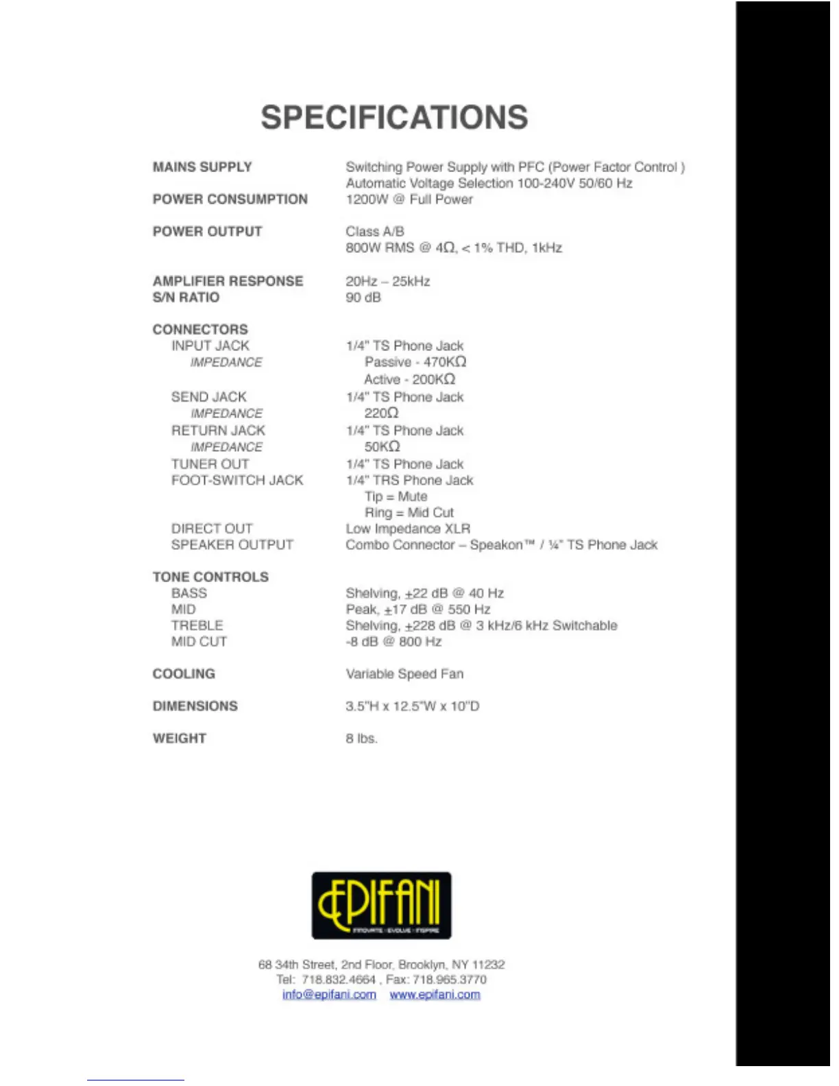 Epifani UL501 - Specifications