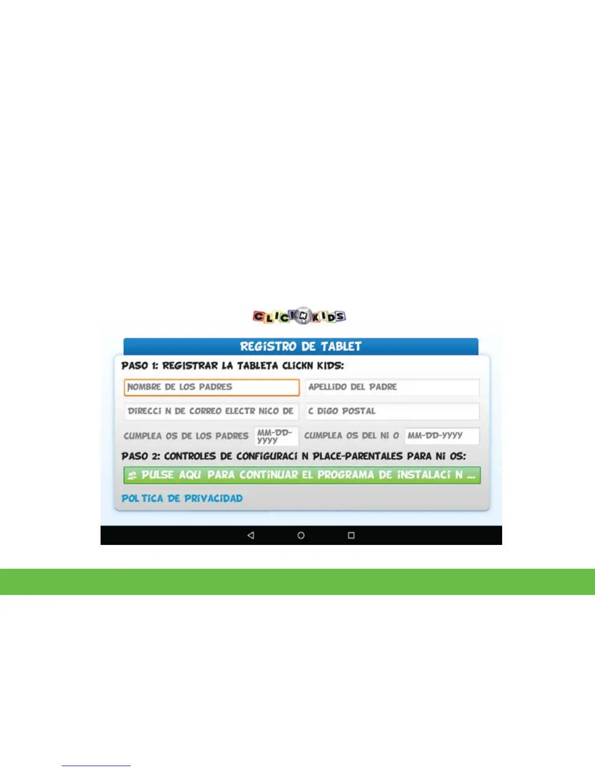 Ahora va a configurar su cuenta primaria ClickN KIDS. Rellene todos los