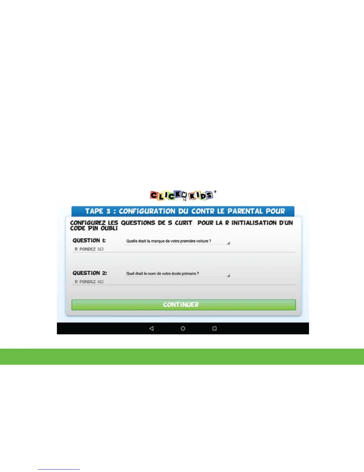 Remplissez les quesons de sécurité. Appuyez sur Connuer pour