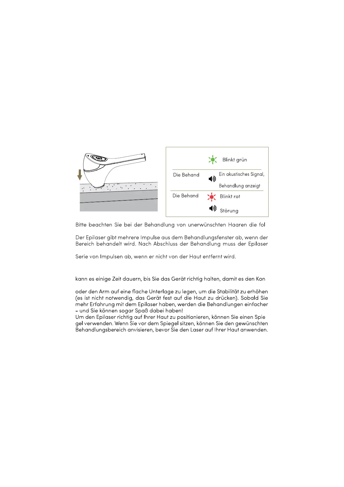 Die korrekte Anwendung des Epilasers erfordert etwas Übung. Am Anfang