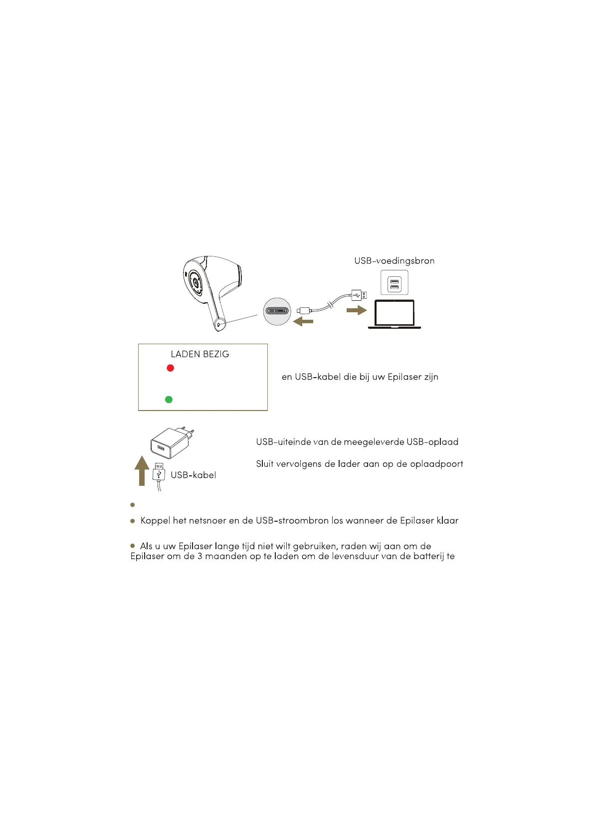 Het duurt ongeveer 3 uur om de Epilaser volledig op te laden.