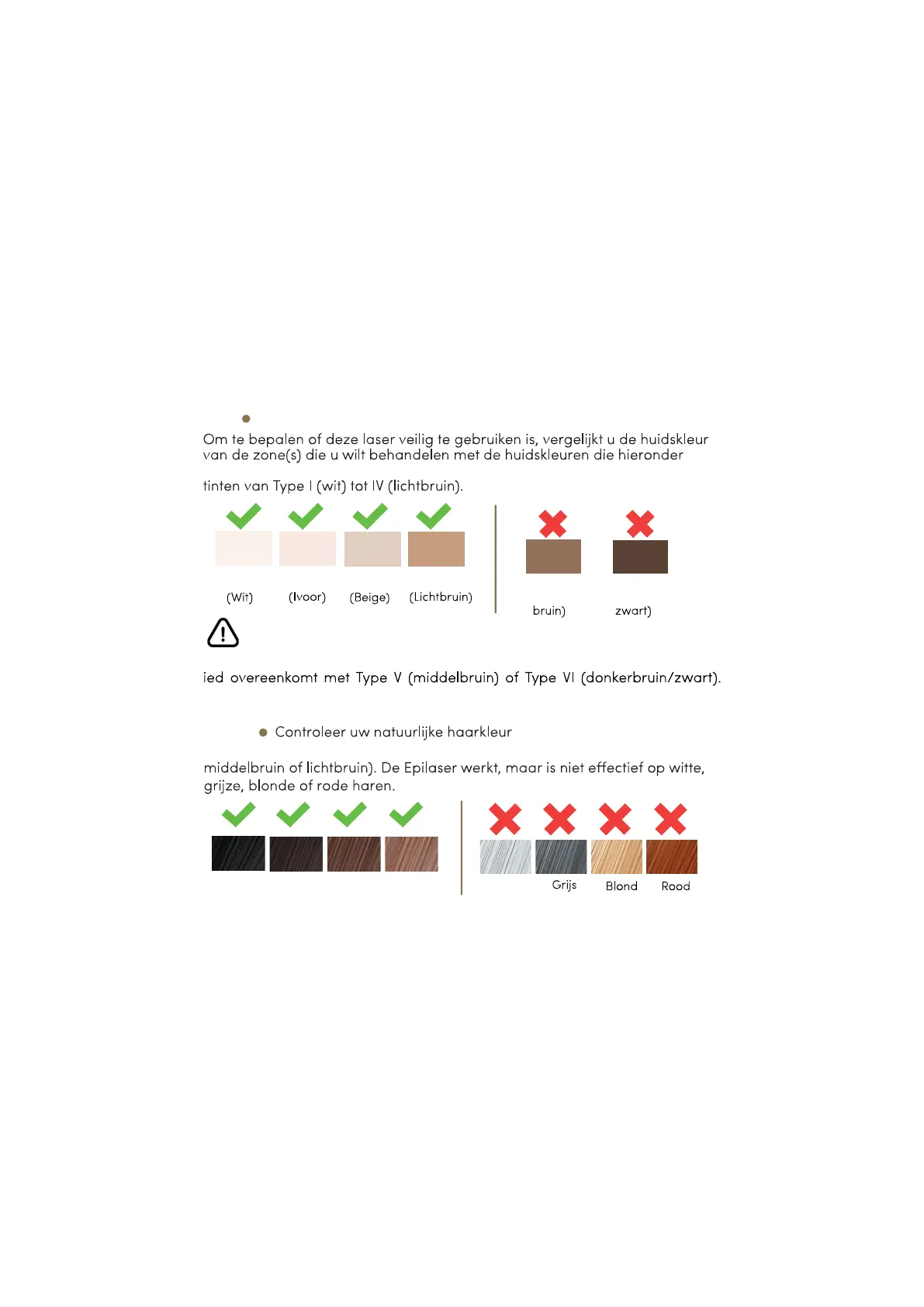 GEBRUIK HET APPARAAT NIET als de huidskleur van het te behandelen geb-