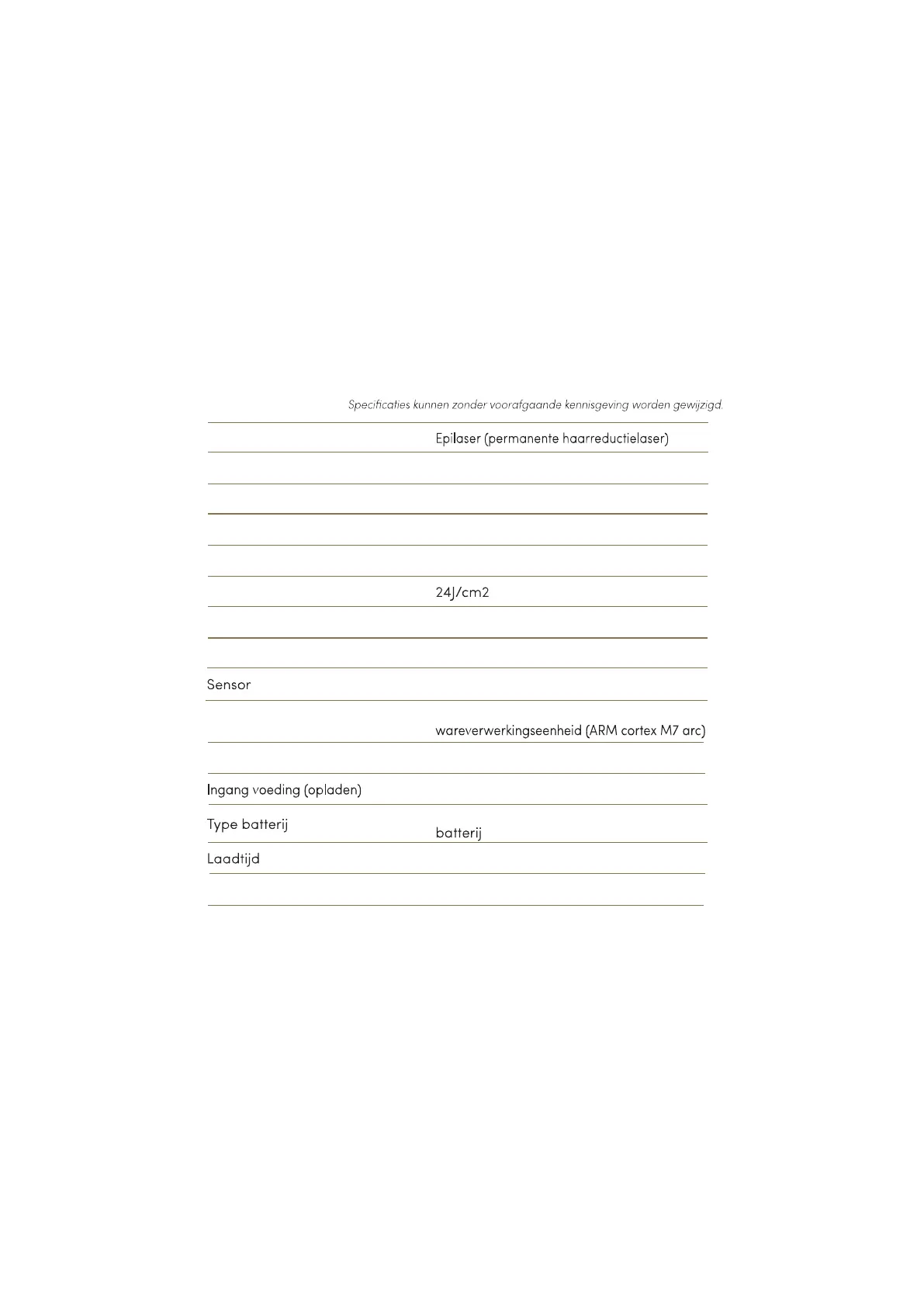 SPECIFICATIES