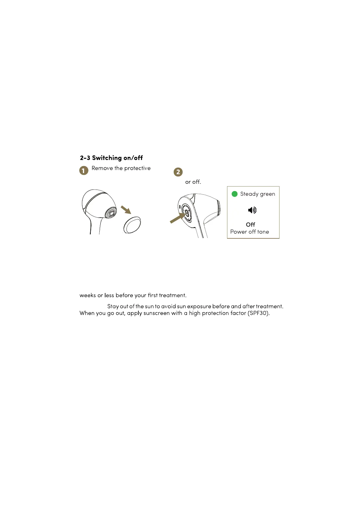 for 2 seconds to turn the Epilaser on