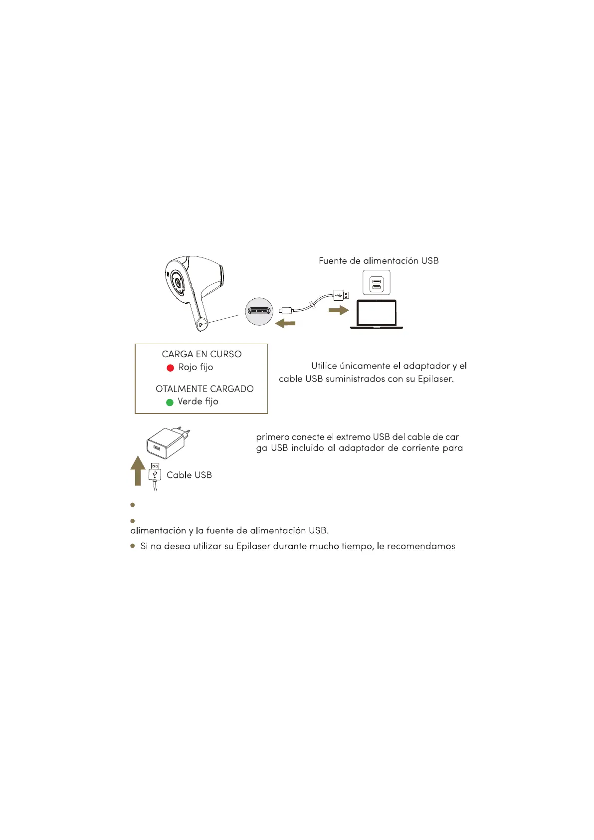 Cuando el Epilaser haya terminado de cargarse, desconecte el cable de
