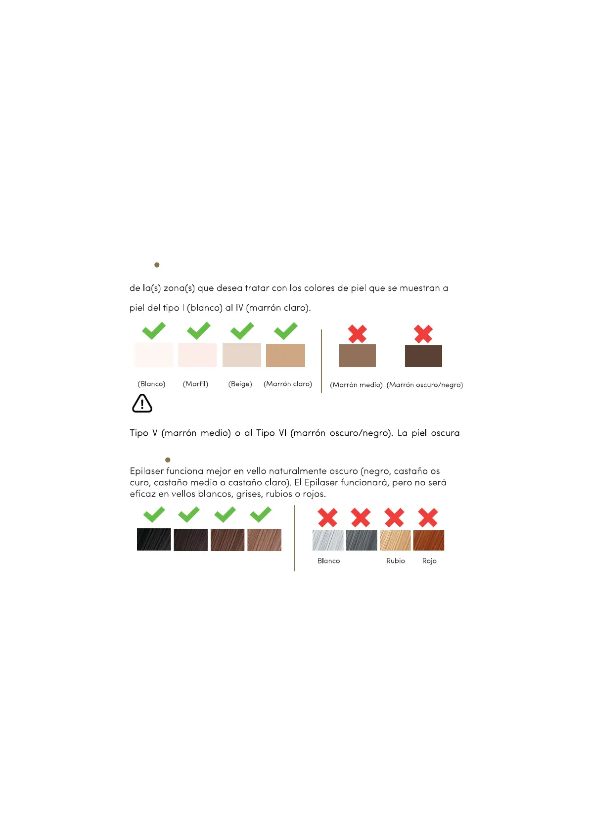 continuación. El Epilaser está previsto para utilizarse únicamente en tonos de