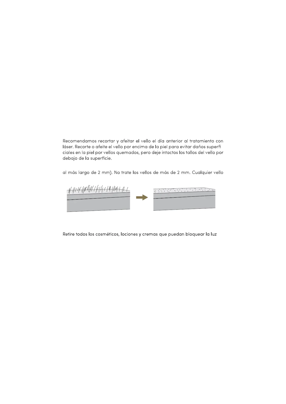 Los vellos deben ser visibles en el momento del tratamiento (del más corto