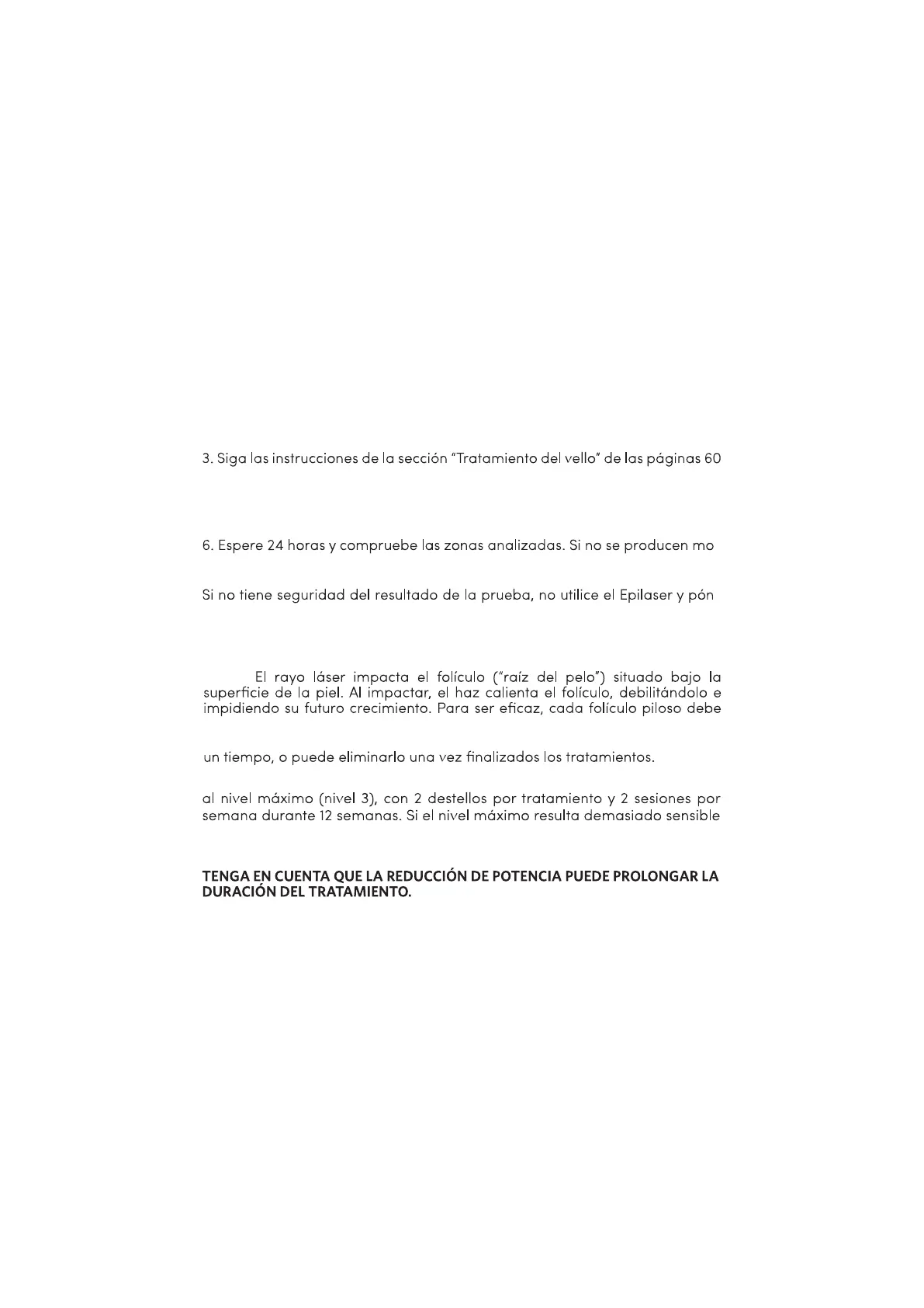 ciclos, se requieren varios tratamientos. El vello se caerá por sí solo al cabo de