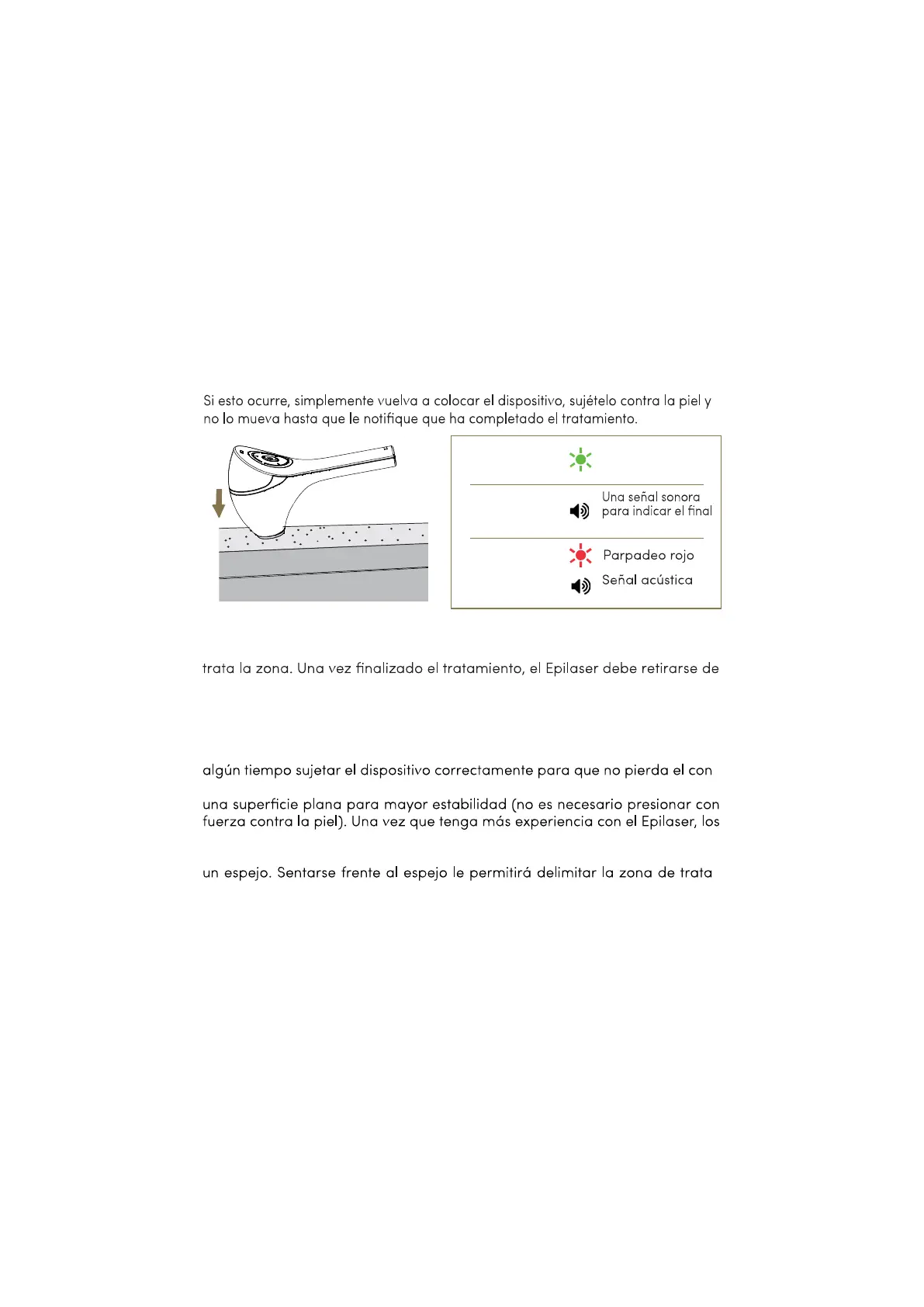 la piel y volver a colocarse. El Epilaser solo aplicará una serie de pulsos si no