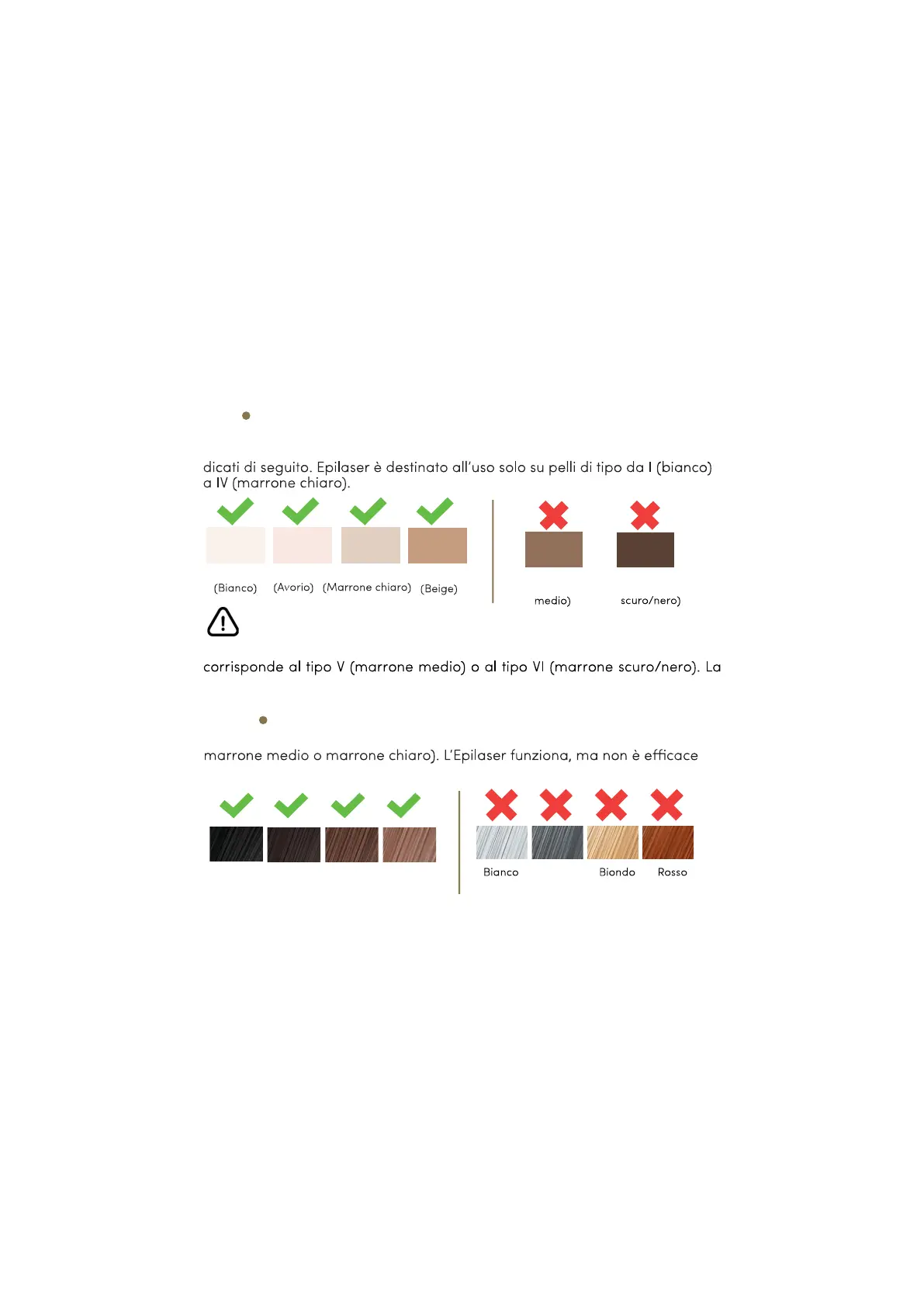 NON UTILIZZARE il dispositivo se la tonalità della pelle della zona da trattare