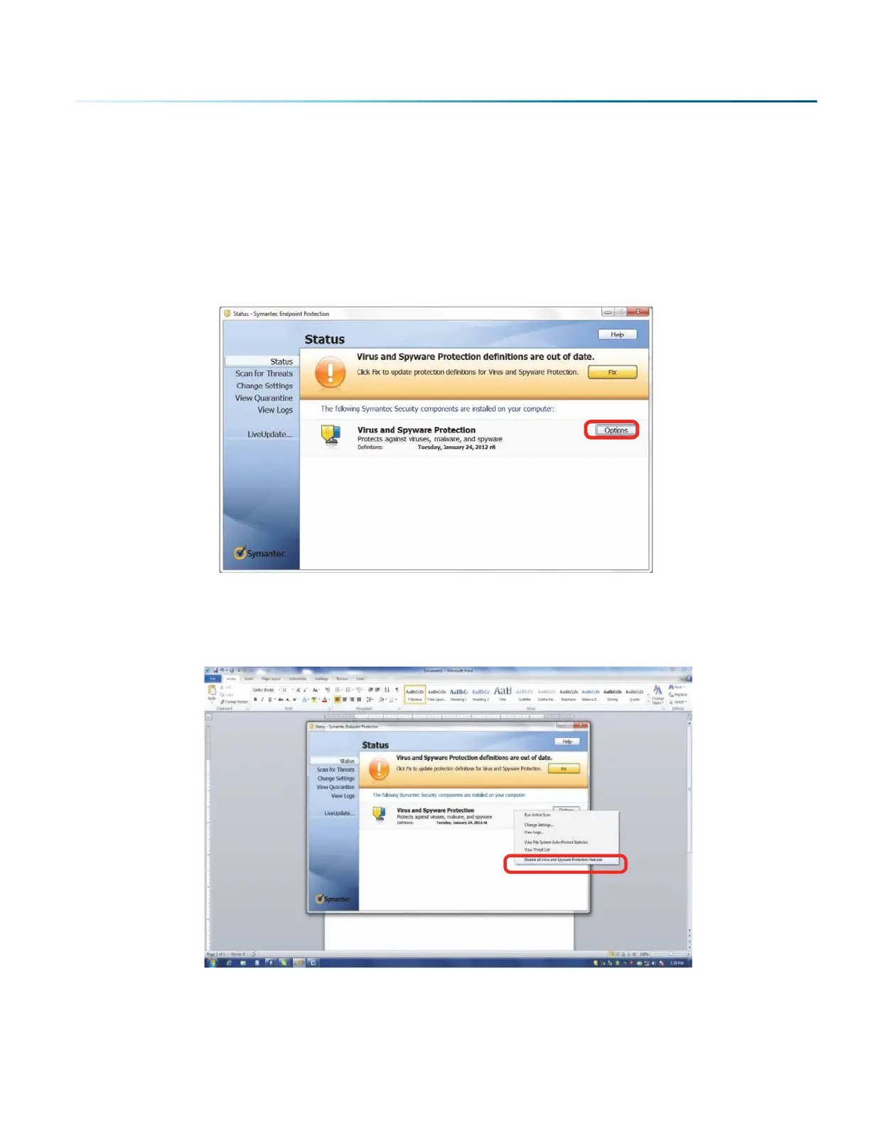 To disable Symantec Anti-Virus soware, choose Options. Other anti-virus packages should have