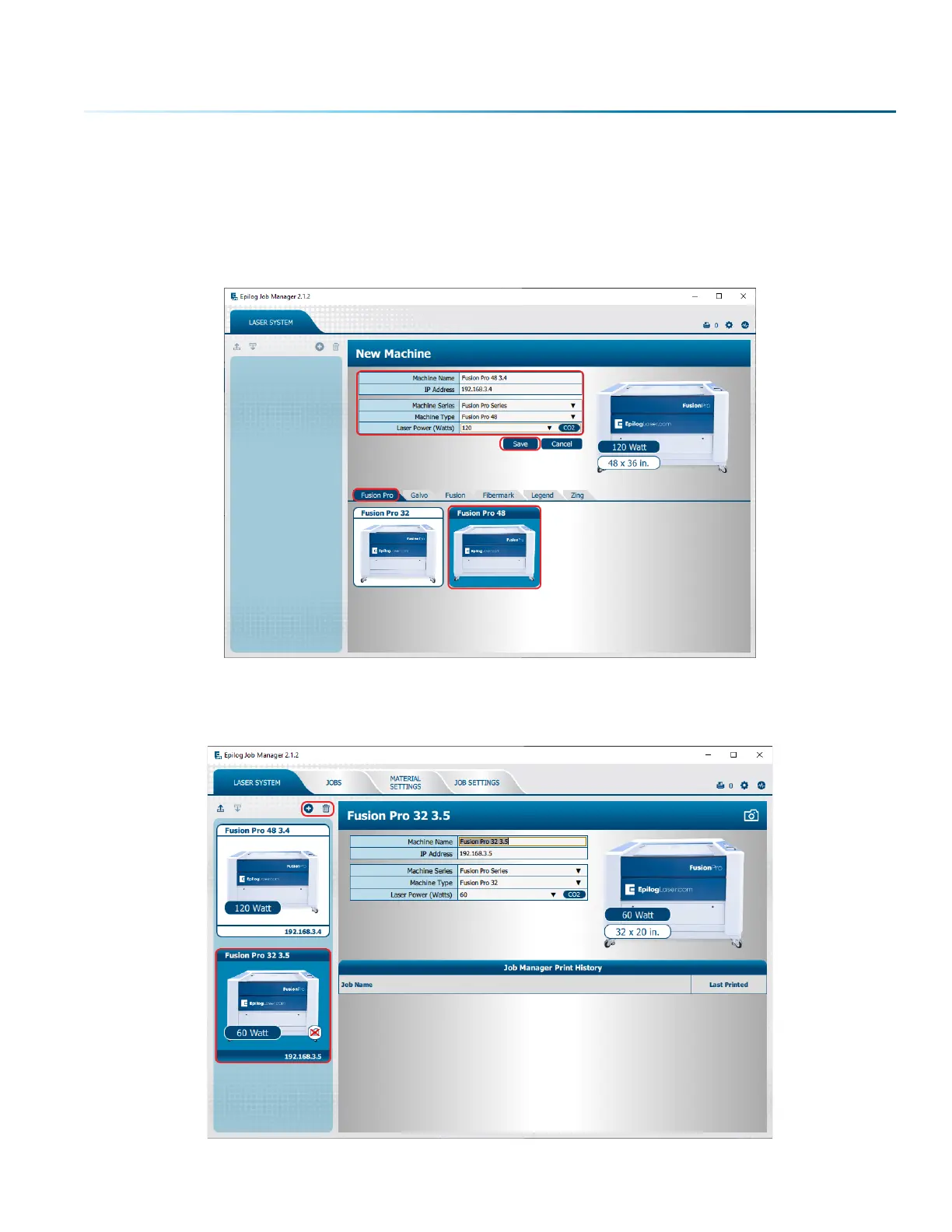 1. The first time you open the Job Manager you’ll see a tab for each of the machine models. Begin by