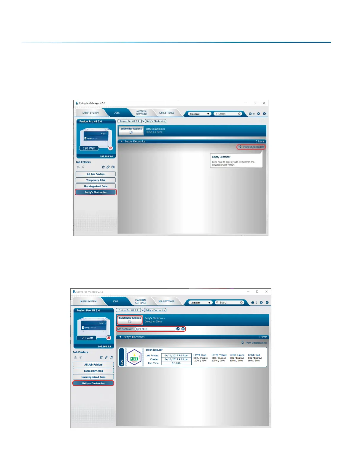 Uncategorized to move a job from the Uncategorized folder to this subfolder. Select the job you want to
