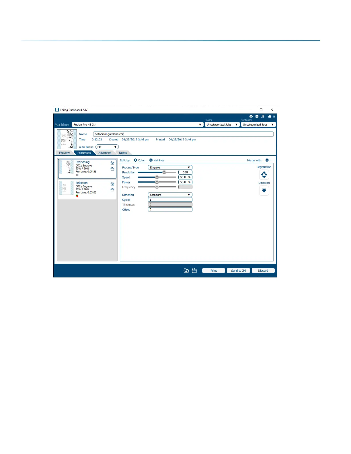 Epilog FusionPro 32 - Processes Tab
