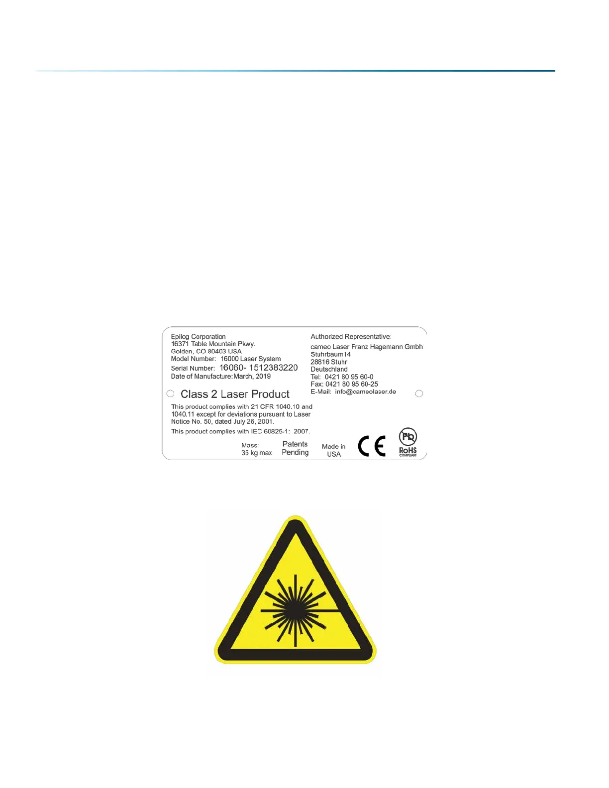 products. Reproductions of labels on the Epilog Model 16000 Laser System follow, with their locations