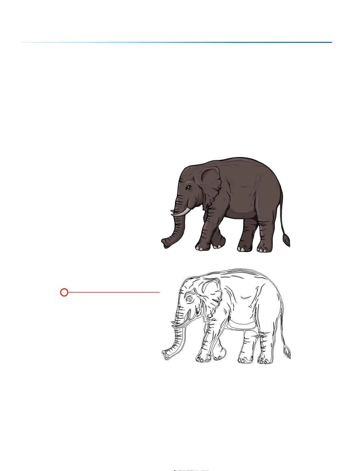 first raster engrave most of the elephant then vector cut any of the thin lines below .003” (0.077 mm) in