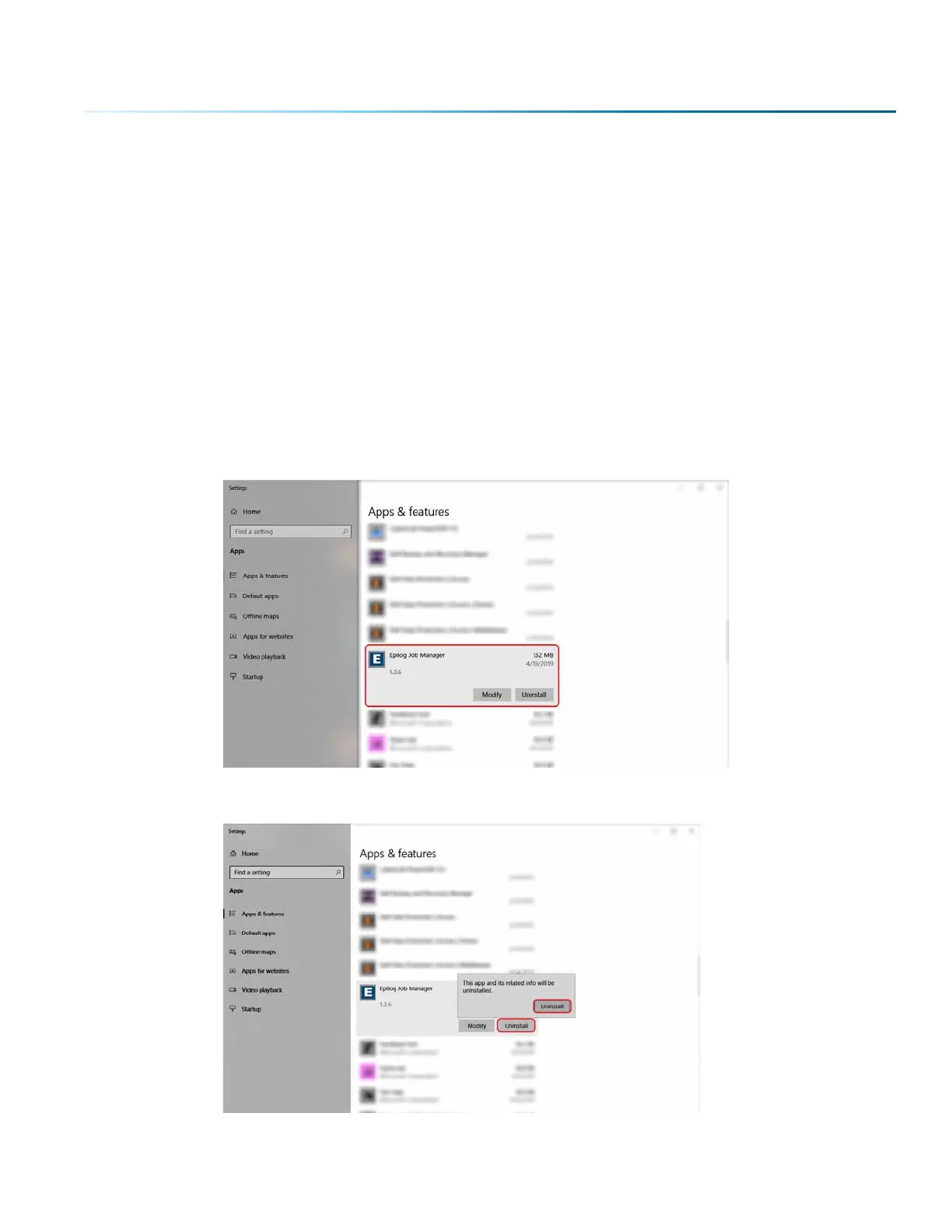 1. Go to Control Panel > Programs and Features and click on Epilog Job Manager