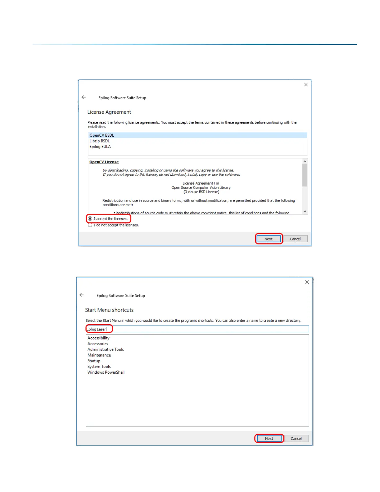 5. Read and accept the license agreements and click Next.