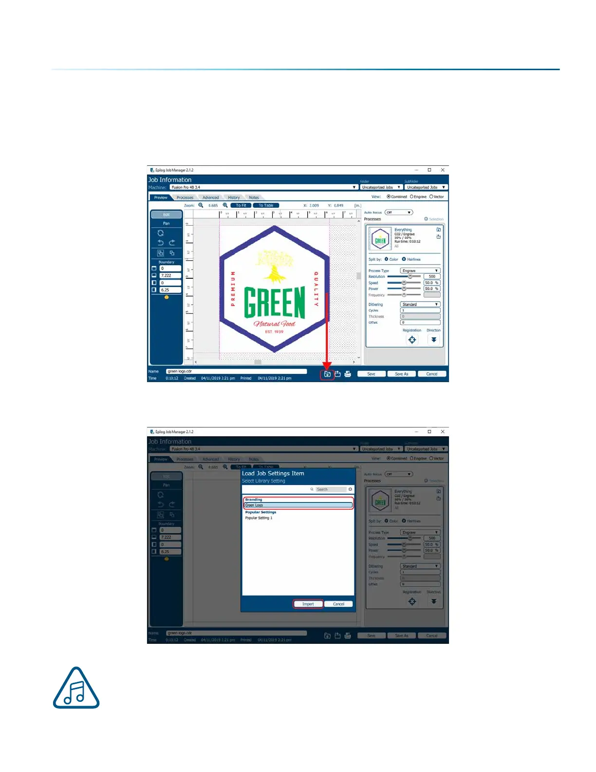 1. To import previously saved settings to a new job, click the Import Job Settings button at the bottom