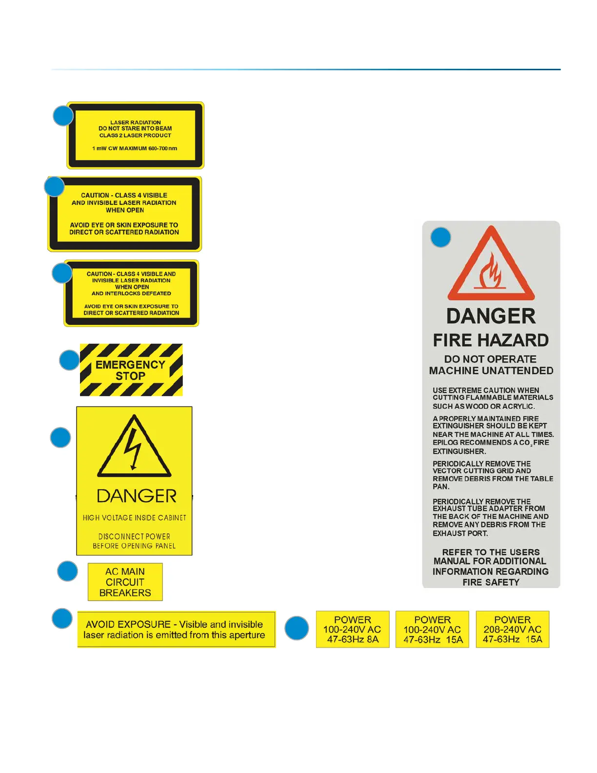 products. Reproductions of labels on the Epilog Model 16000 Laser System follow, with their locations