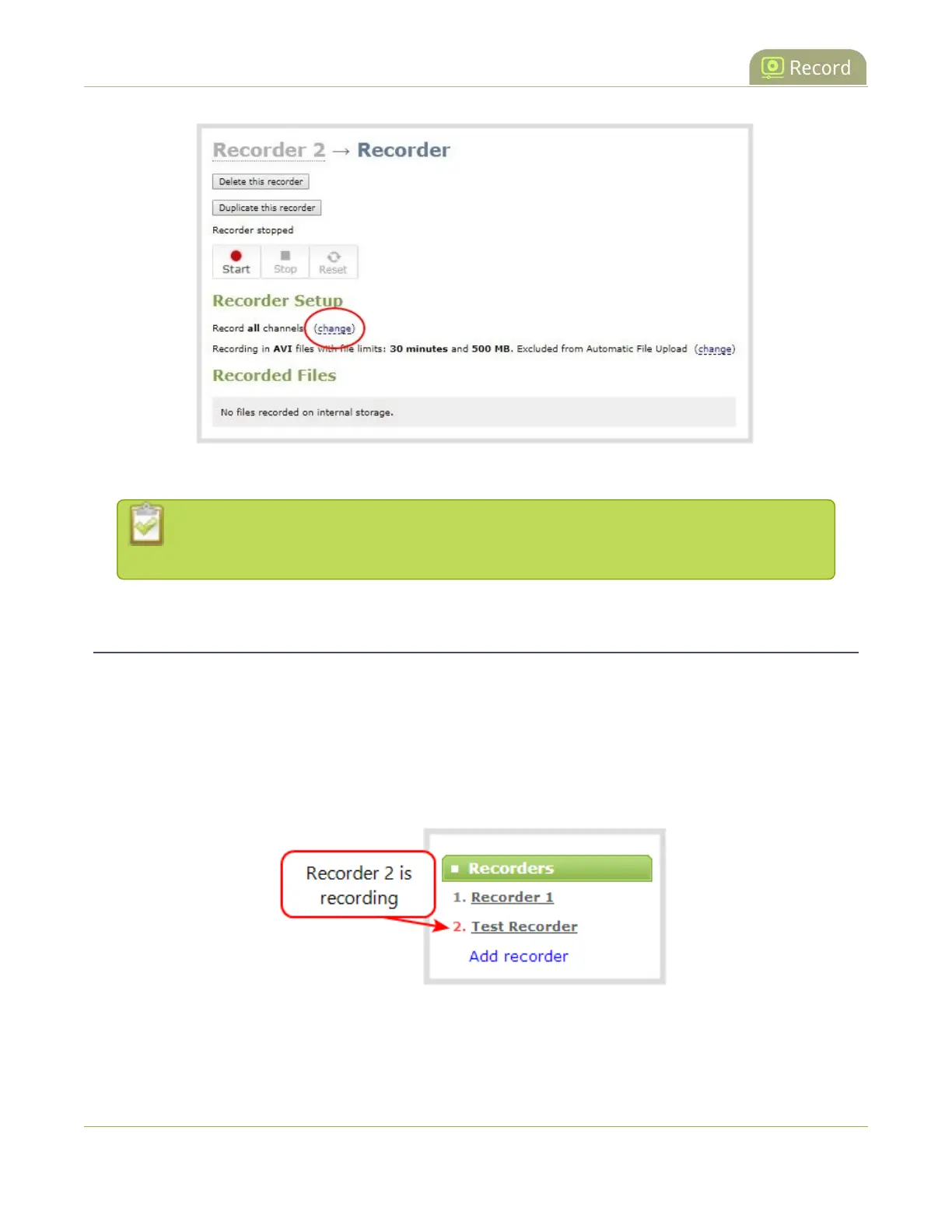You can also start and stop recorders using the One Touch control feature (see Record using One Touch