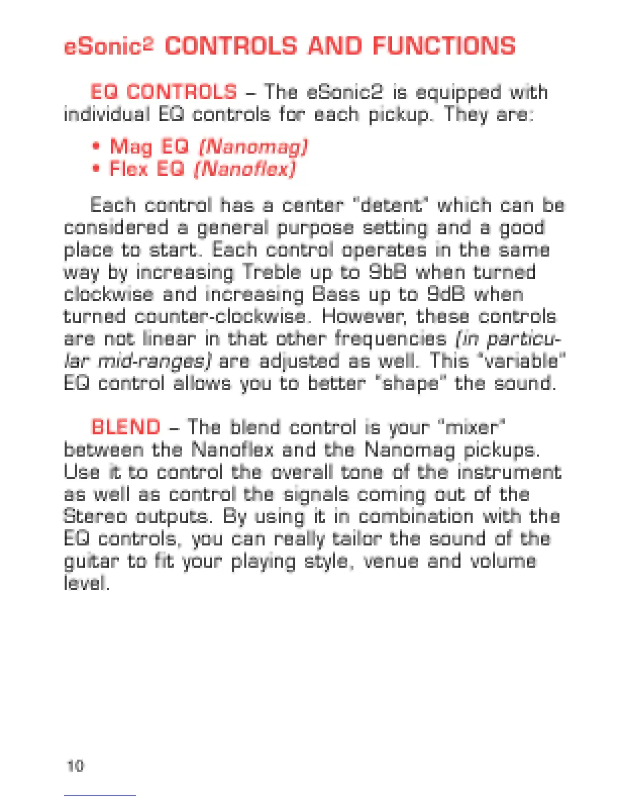 Epiphone eSonic - Epiphone eSonic² System Controls; eSonic² EQ Controls; Blend Control (eSonic²)