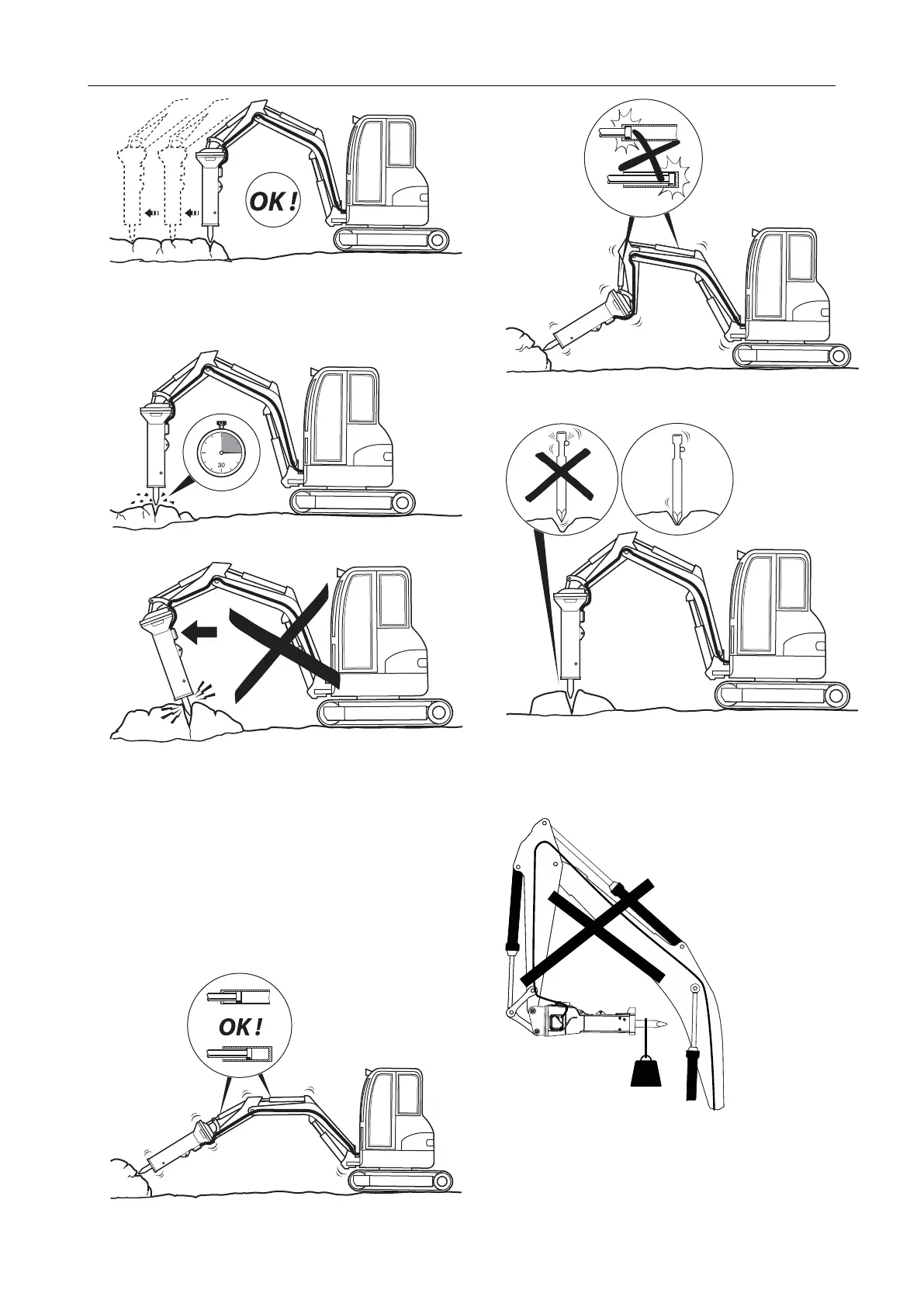 Never use the hydraulic breaker as a sledge
